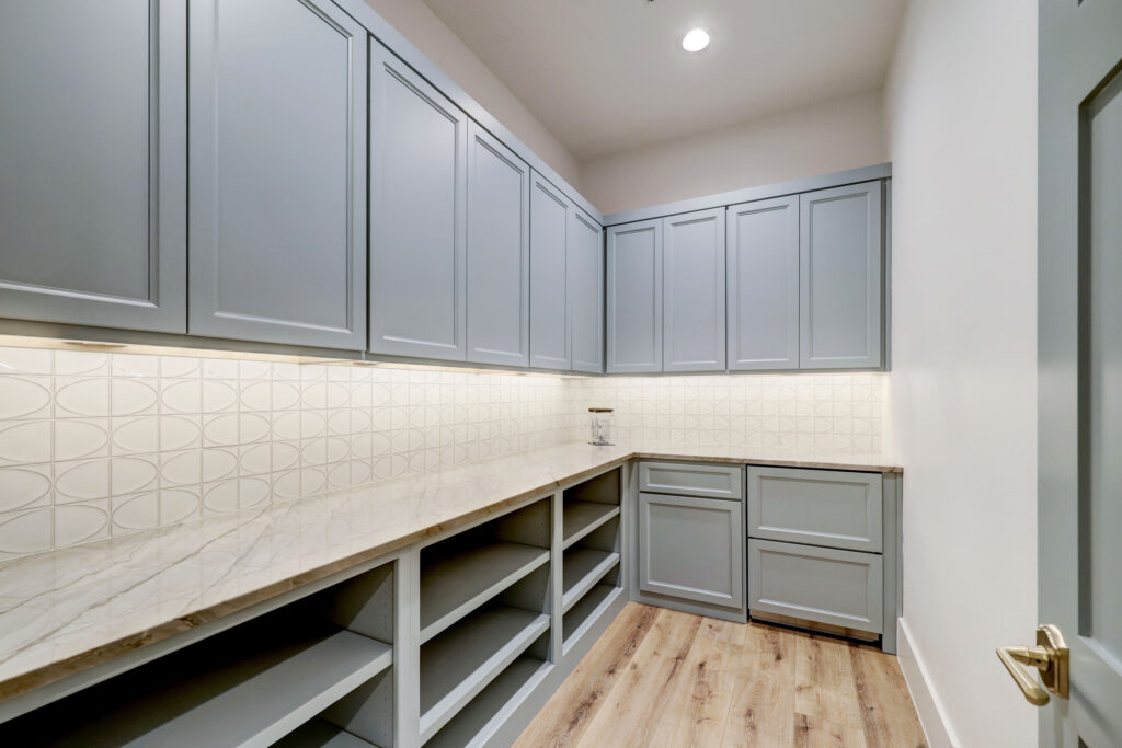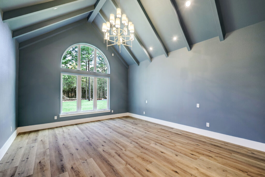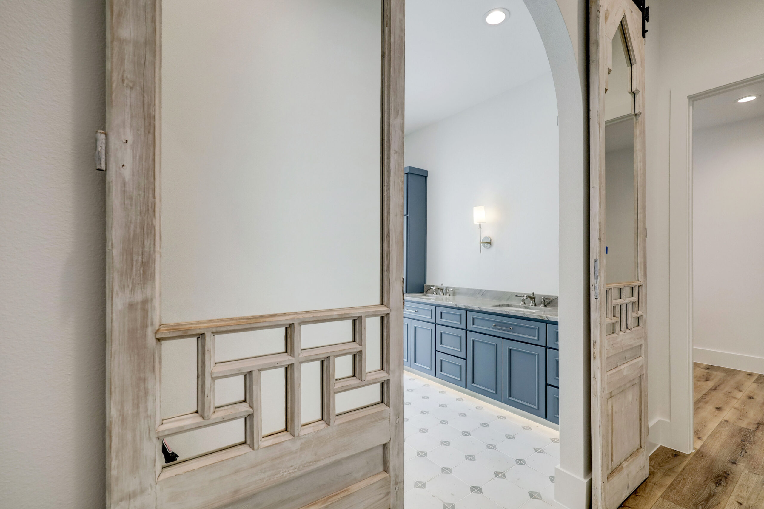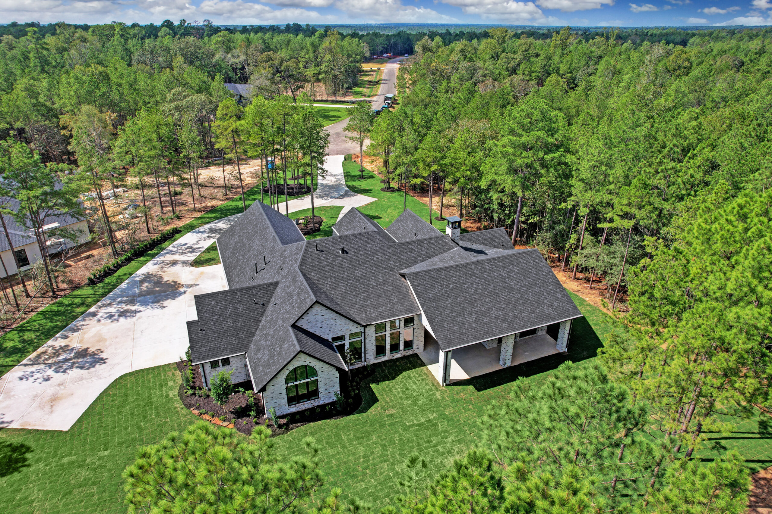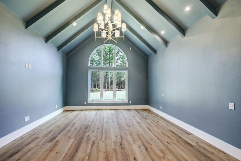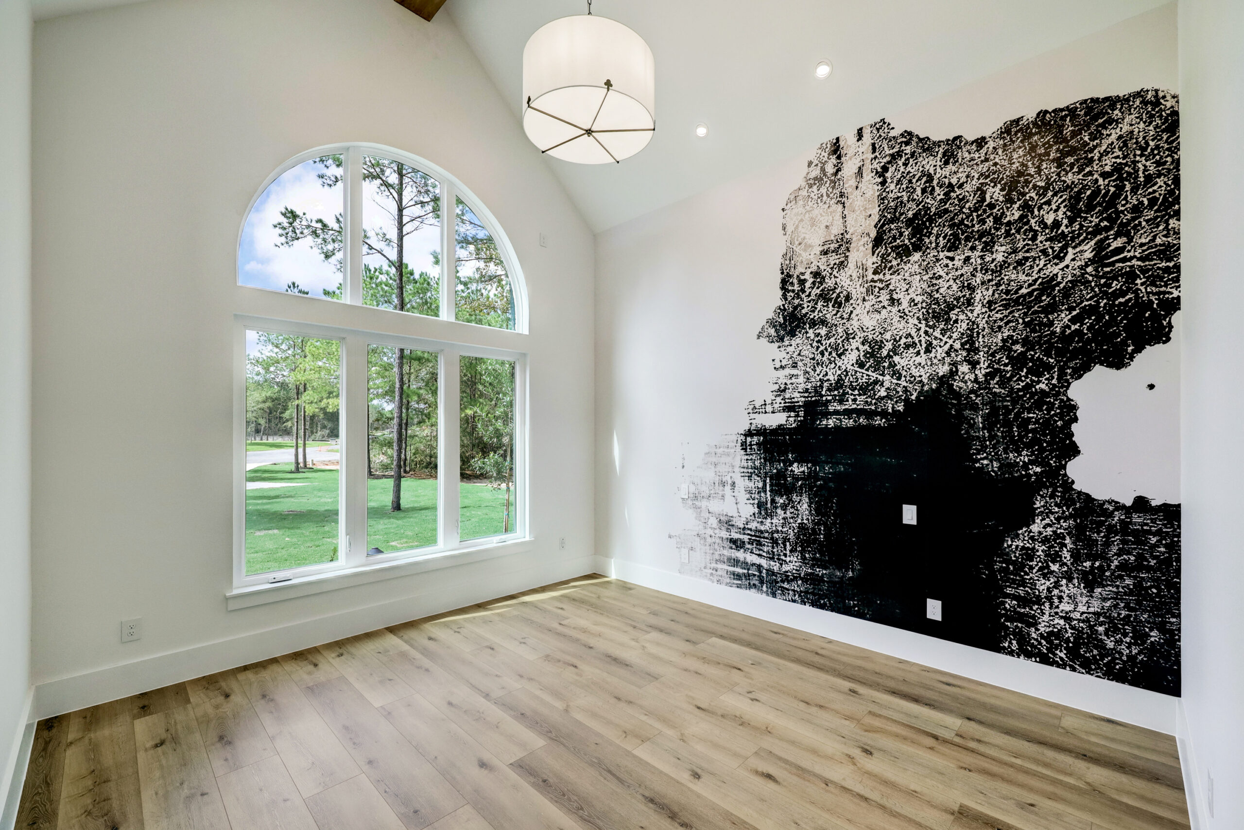 This transitional home blends traditional architecture with a refined, detail-driven design. Arched windows and doors create a consistent architectural feel, while quartzite countertops and a butler pantry elevate the kitchen. Thoughtful spaces—including large laundry, dog wash, and game room—support everyday living. The primary suite offers a calming, spa-like retreat, while outdoor living and a firepit extend the home into its natural surroundings.