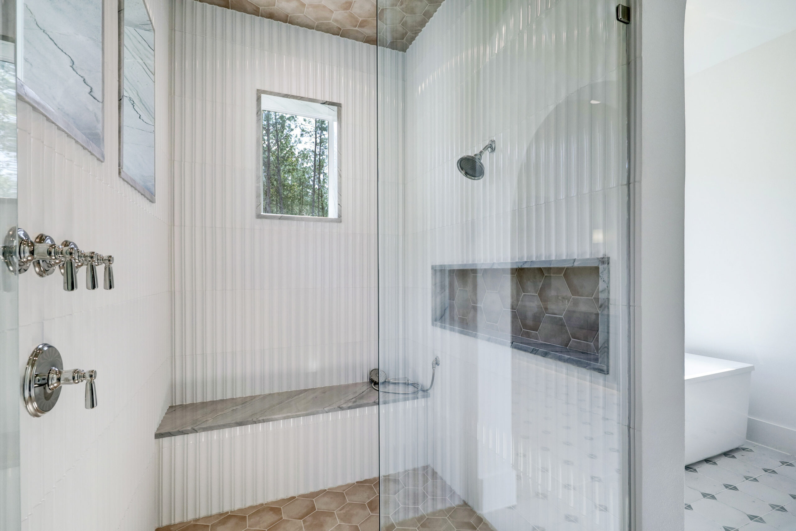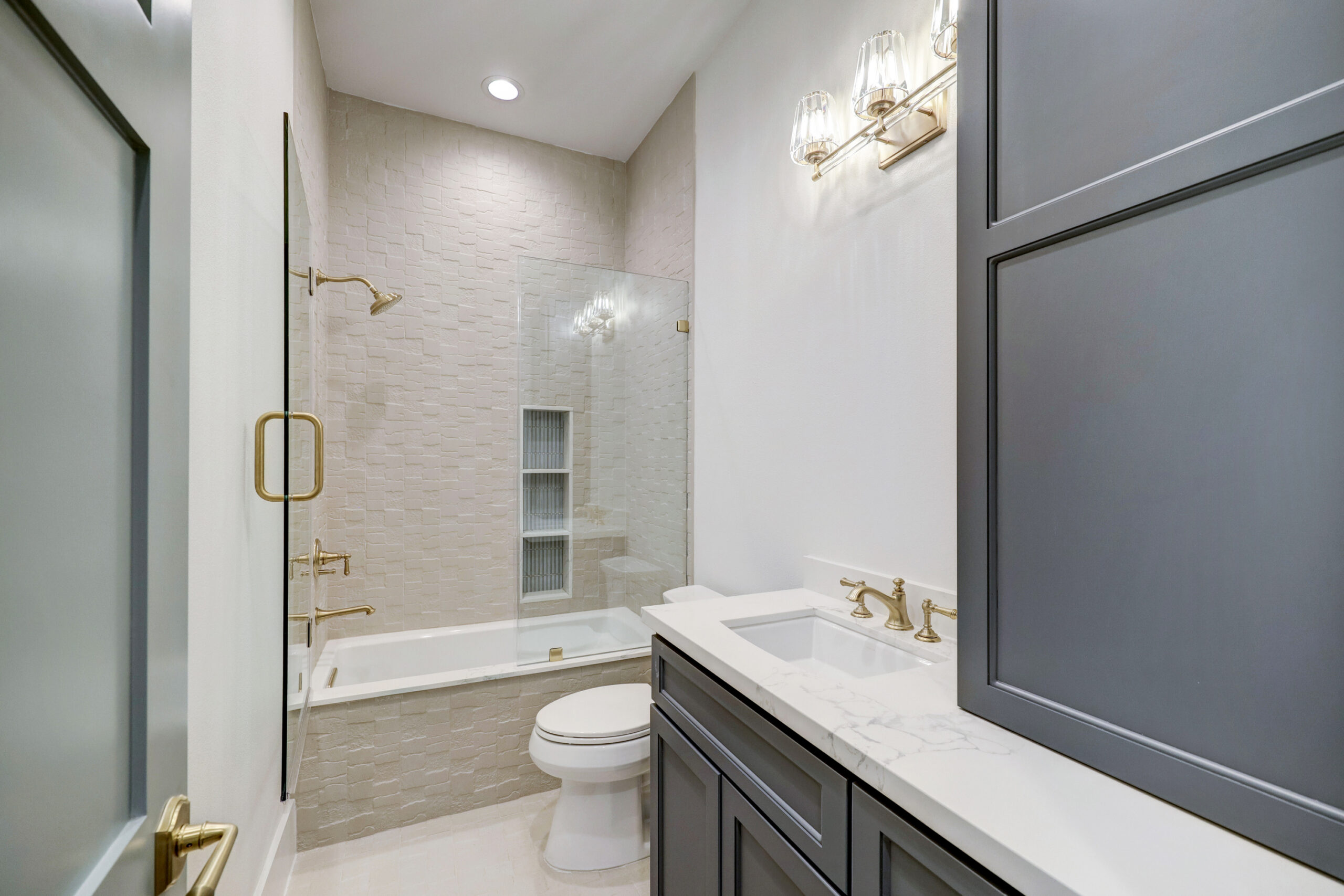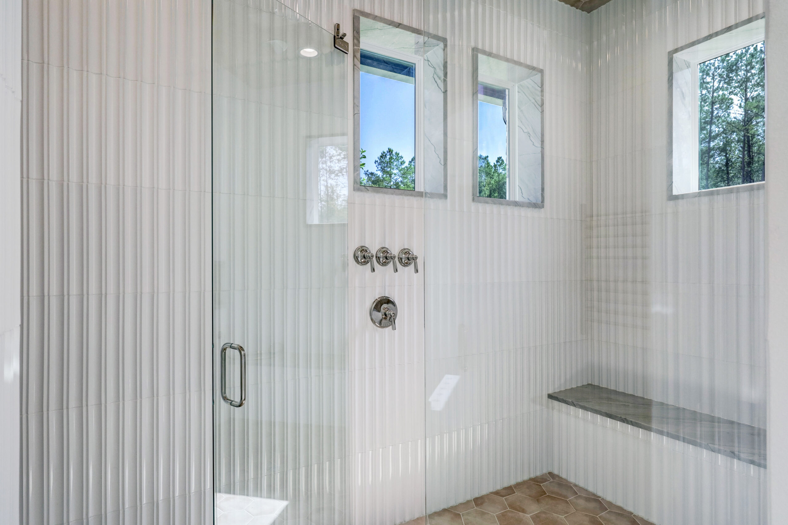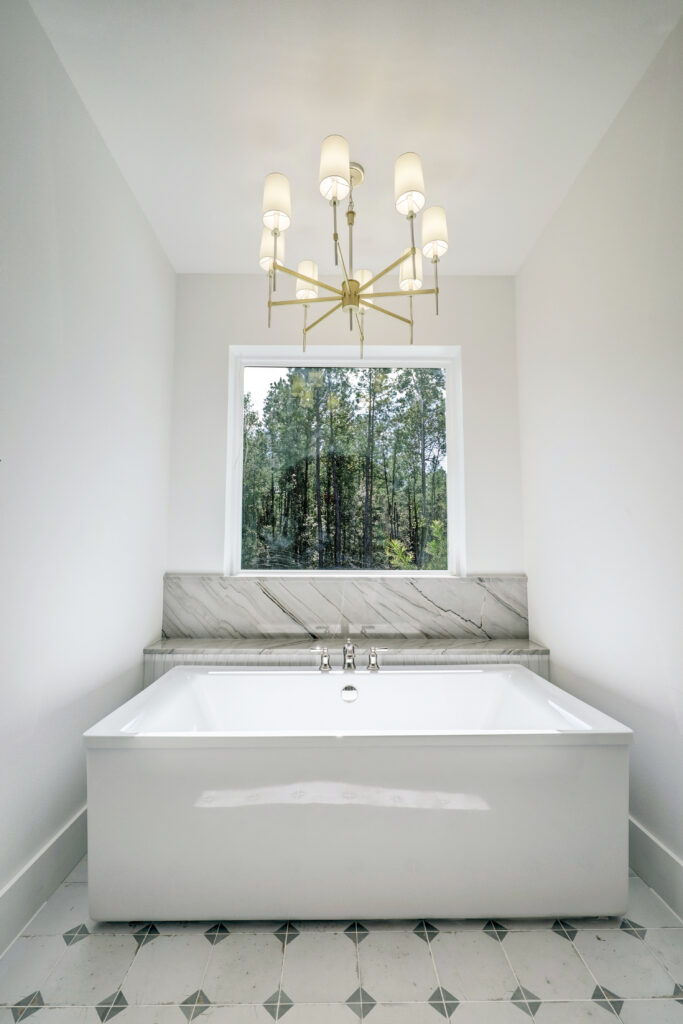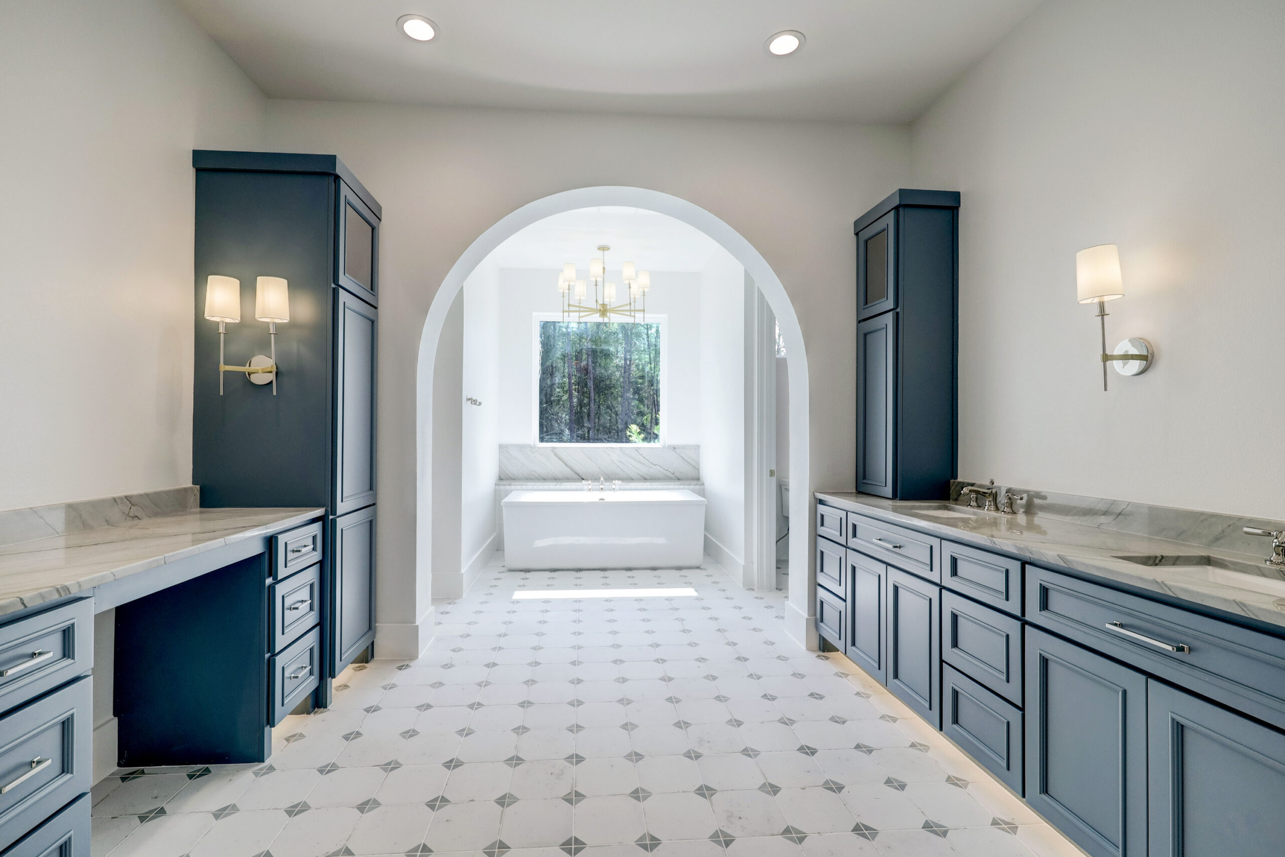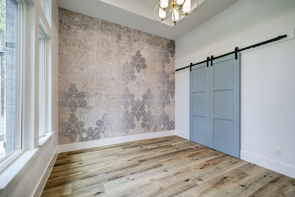 This transitional home blends traditional architecture with a refined, detail-driven design. Arched windows and doors create a consistent architectural feel, while quartzite countertops and a butler pantry elevate the kitchen. Thoughtful spaces—including large laundry, dog wash, and game room—support everyday living. The primary suite offers a calming, spa-like retreat, while outdoor living and a firepit extend the home into its natural surroundings.