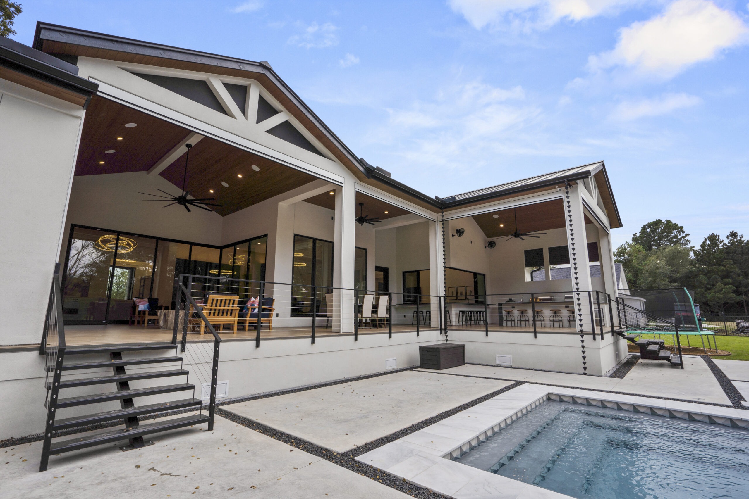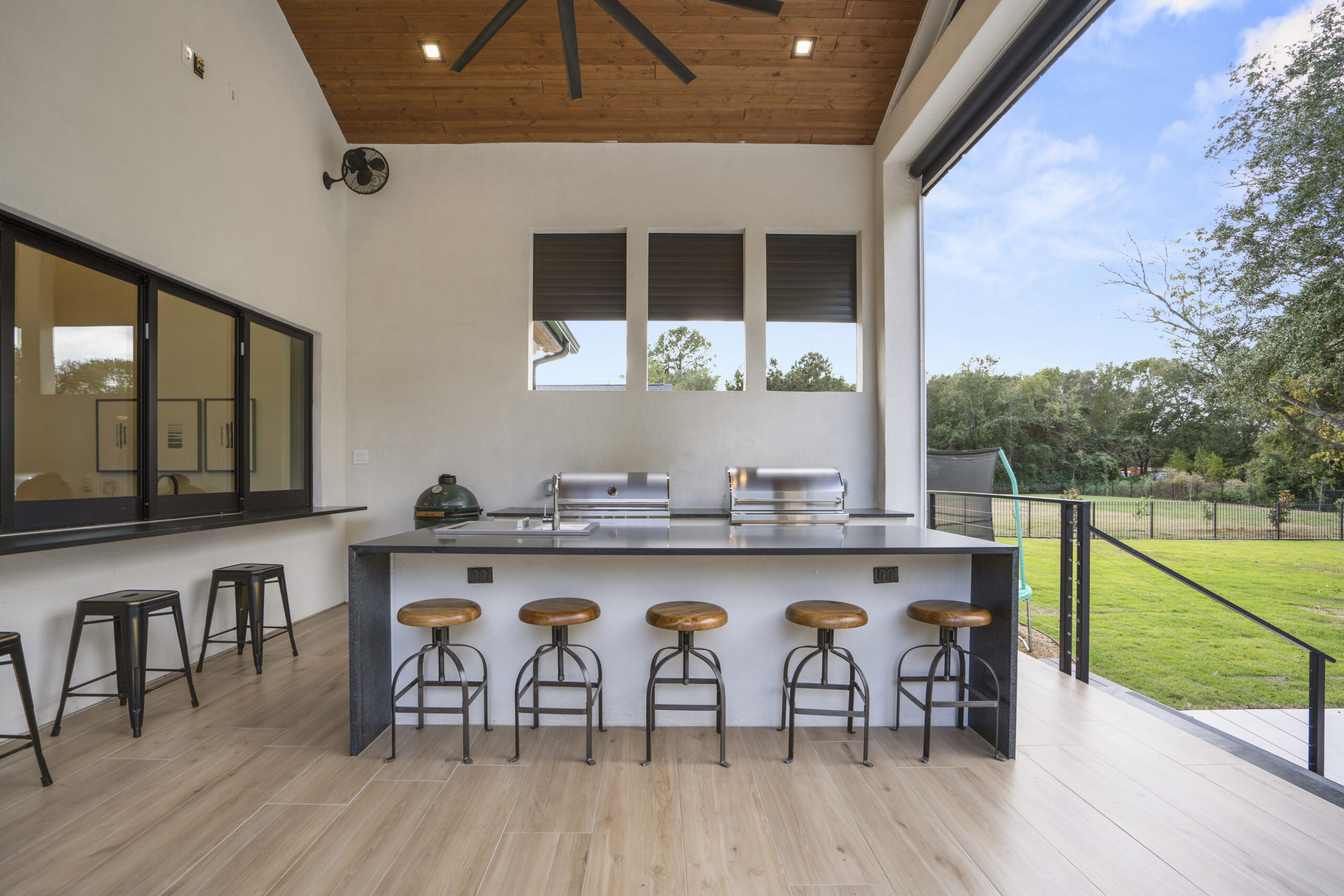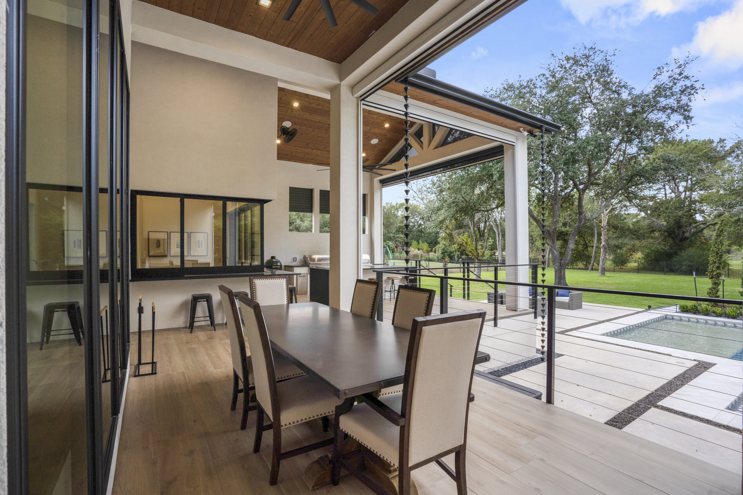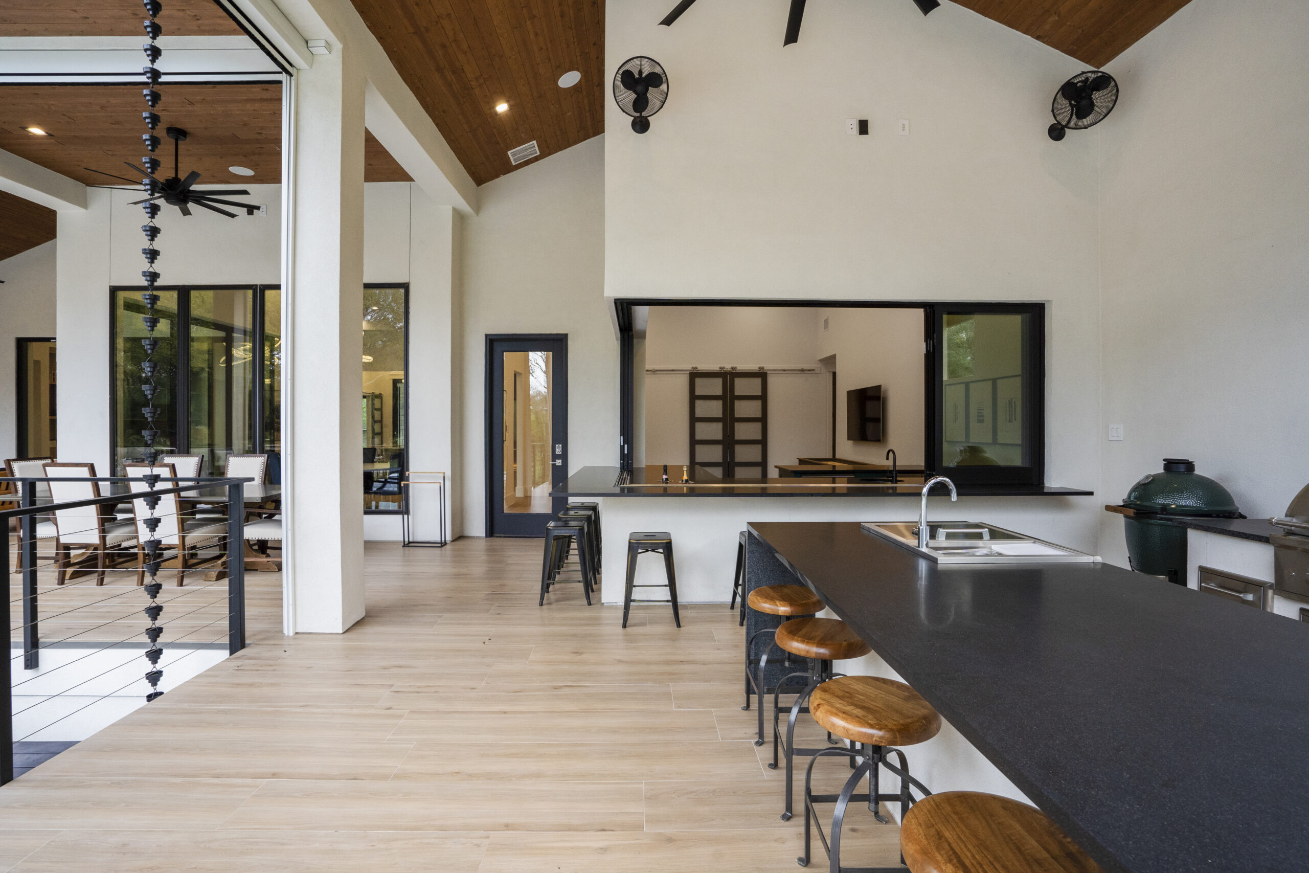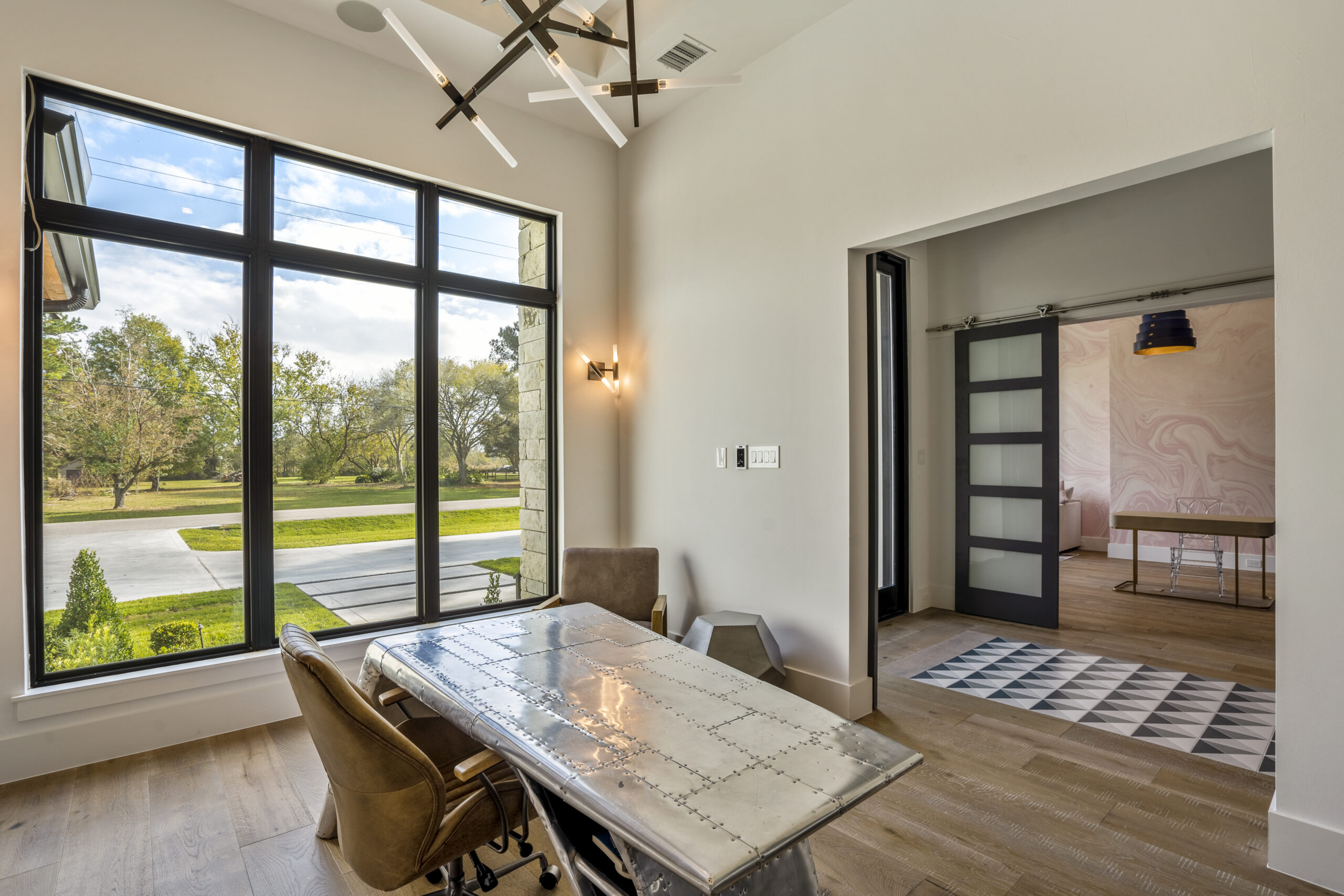 This modern home blends clean architectural lines with subtle Hill Country influences. Interior finishes extend seamlessly outdoors, creating a strong indoor-outdoor connection anchored by a corner-meet sliding door. Detailed ceiling treatments add depth and visual interest throughout the home. The primary suite offers a true retreat with expansive his-and-hers closets and a spa-like wet room. Additional features—including dual offices, a large game room, and custom-finished bedrooms—support both function and elevated living.