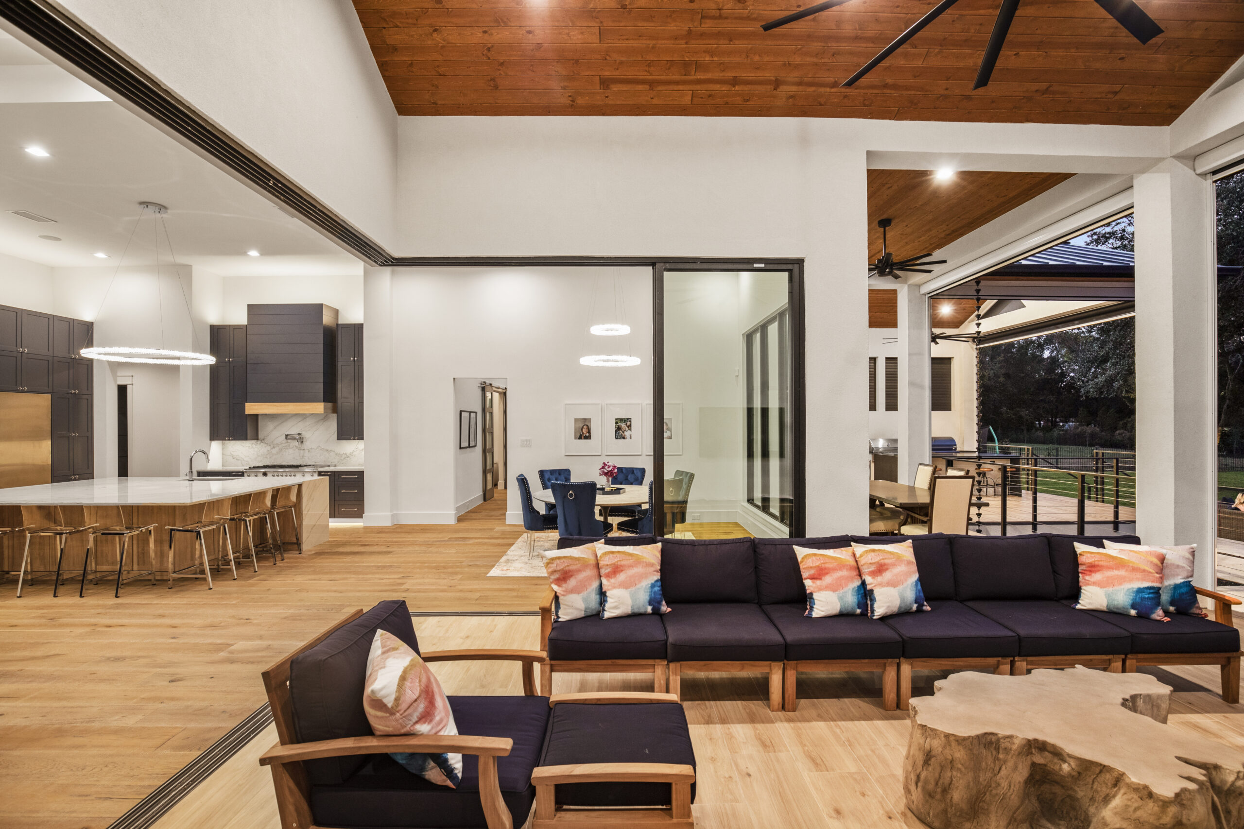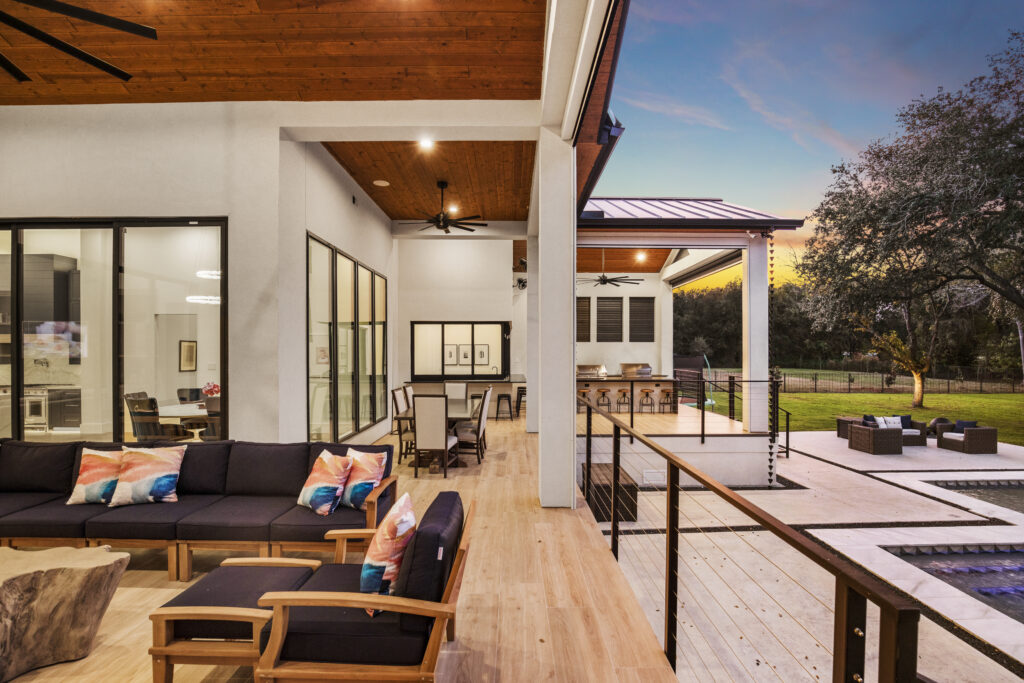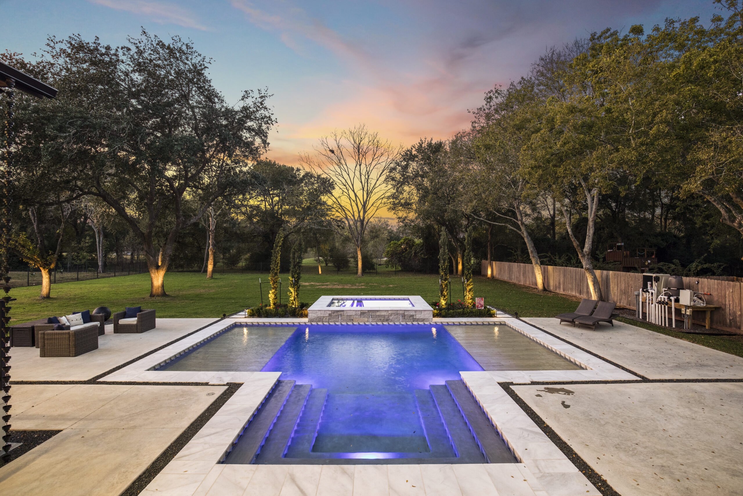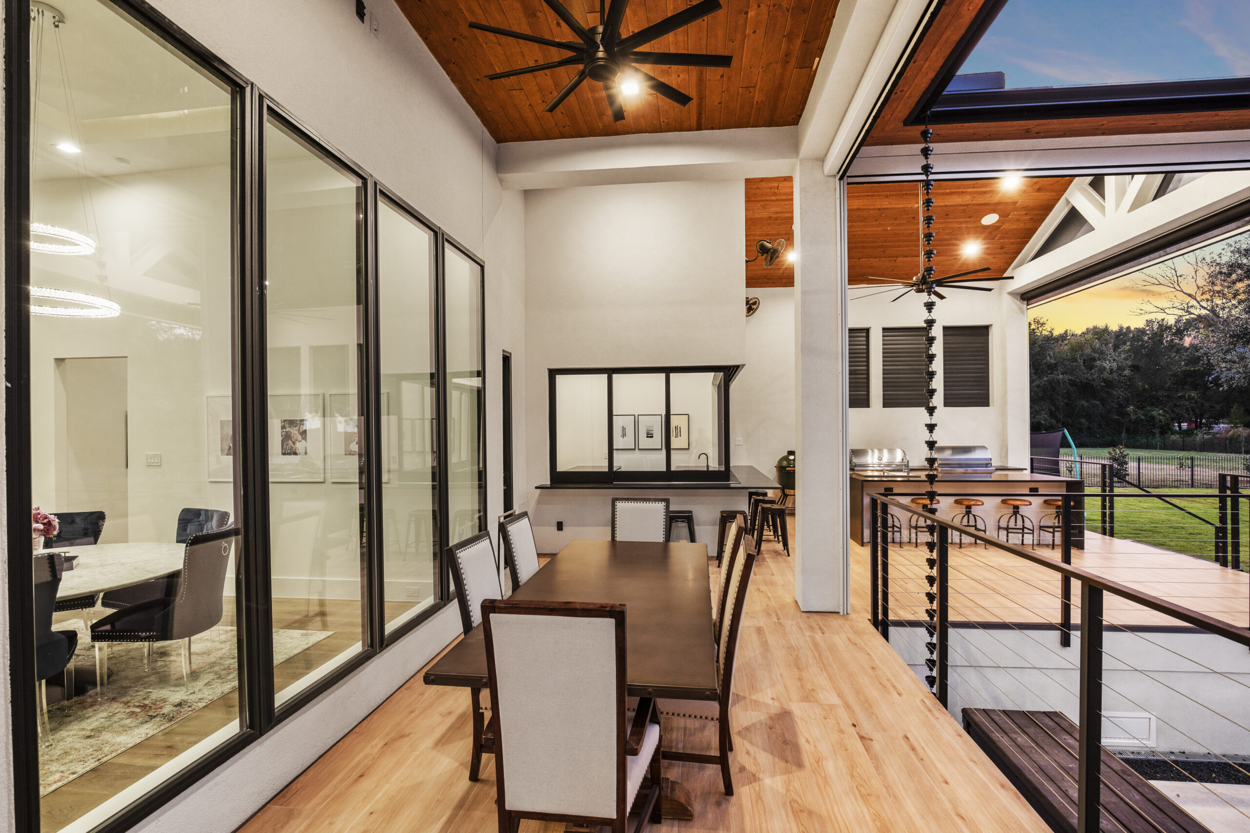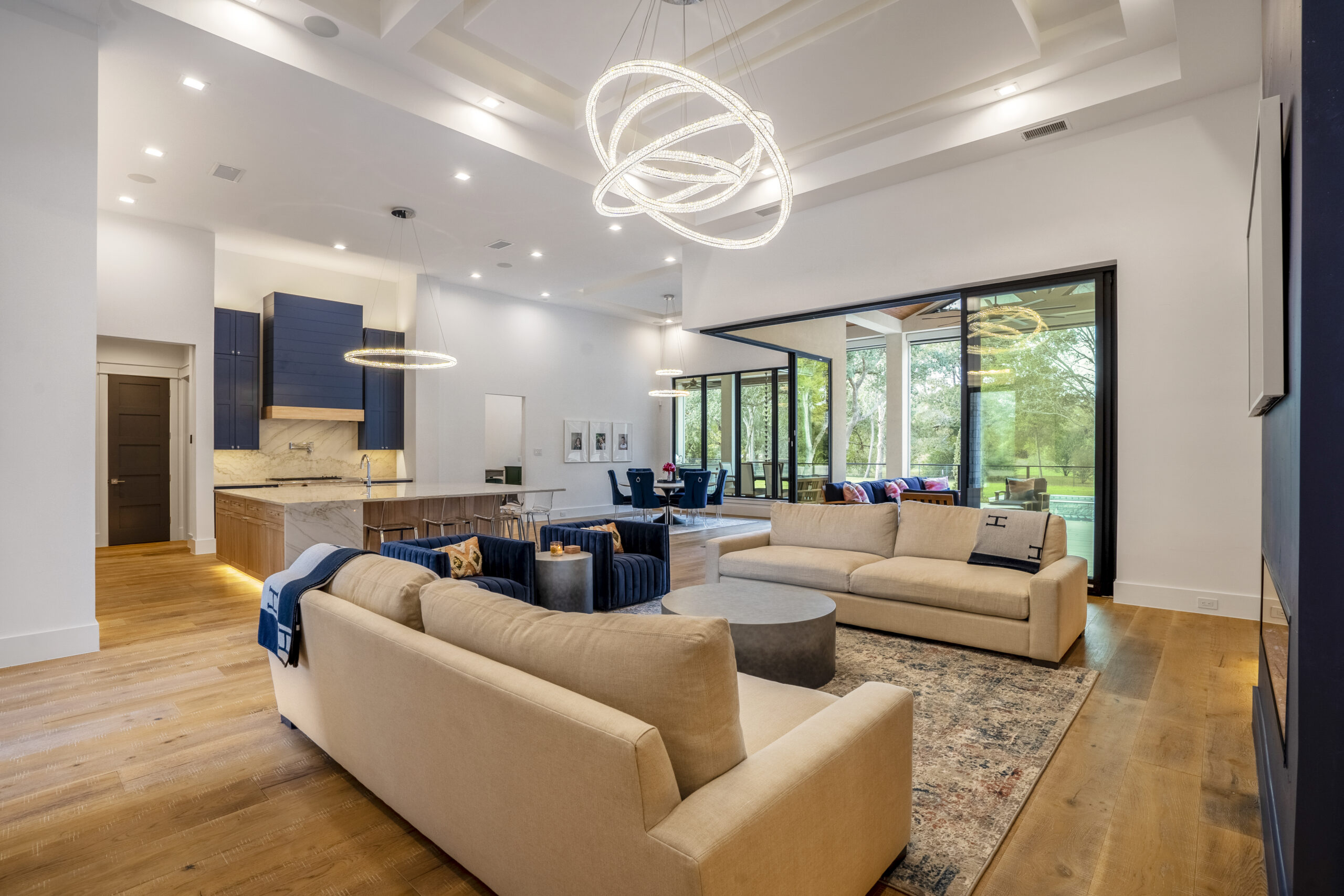 This modern home blends clean architectural lines with subtle Hill Country influences. Interior finishes extend seamlessly outdoors, creating a strong indoor-outdoor connection anchored by a corner-meet sliding door. Detailed ceiling treatments add depth and visual interest throughout the home. The primary suite offers a true retreat with expansive his-and-hers closets and a spa-like wet room. Additional features—including dual offices, a large game room, and custom-finished bedrooms—support both function and elevated living.