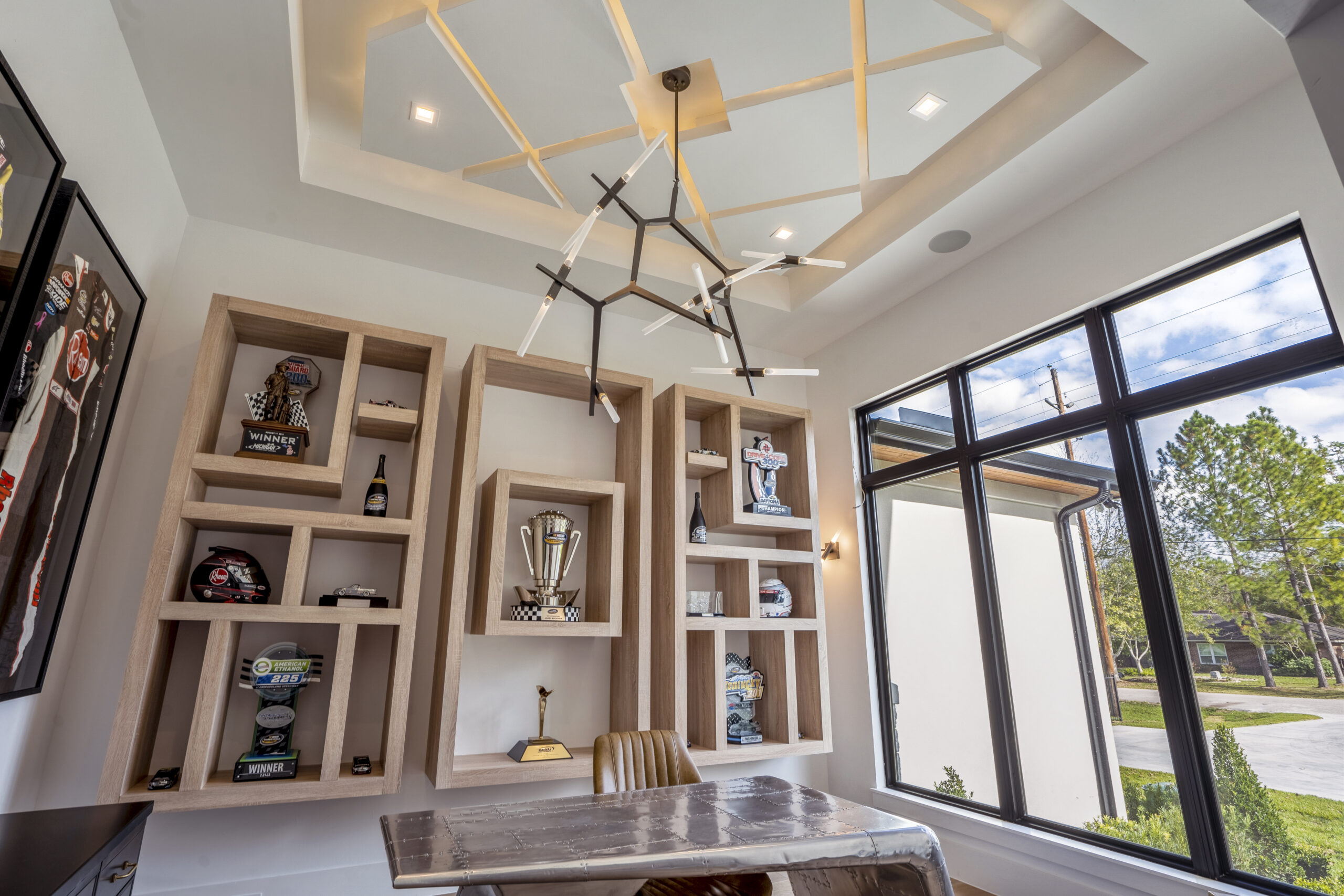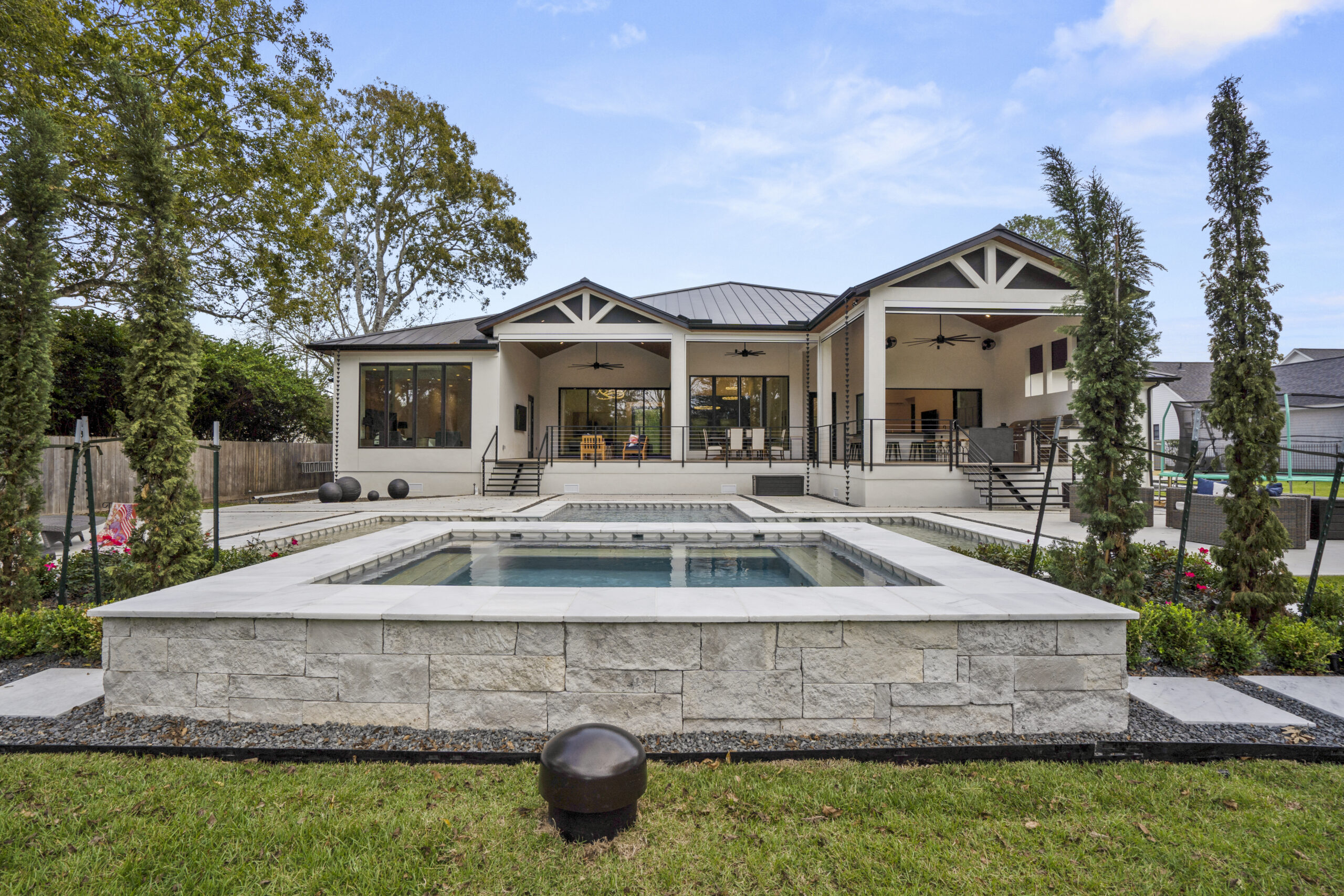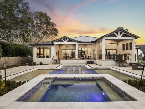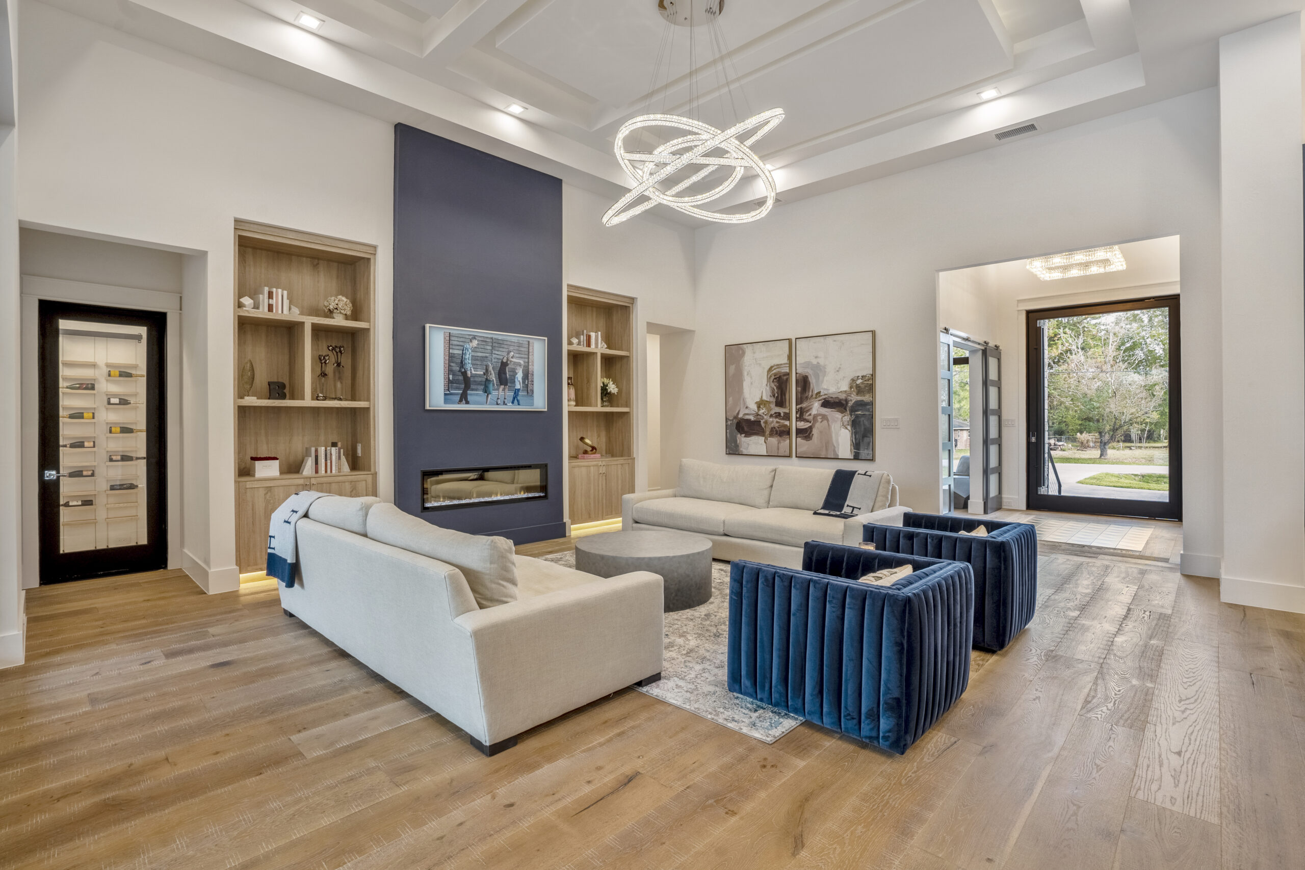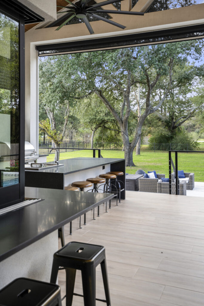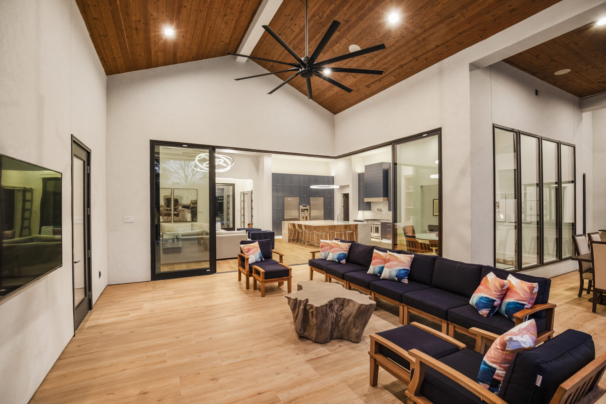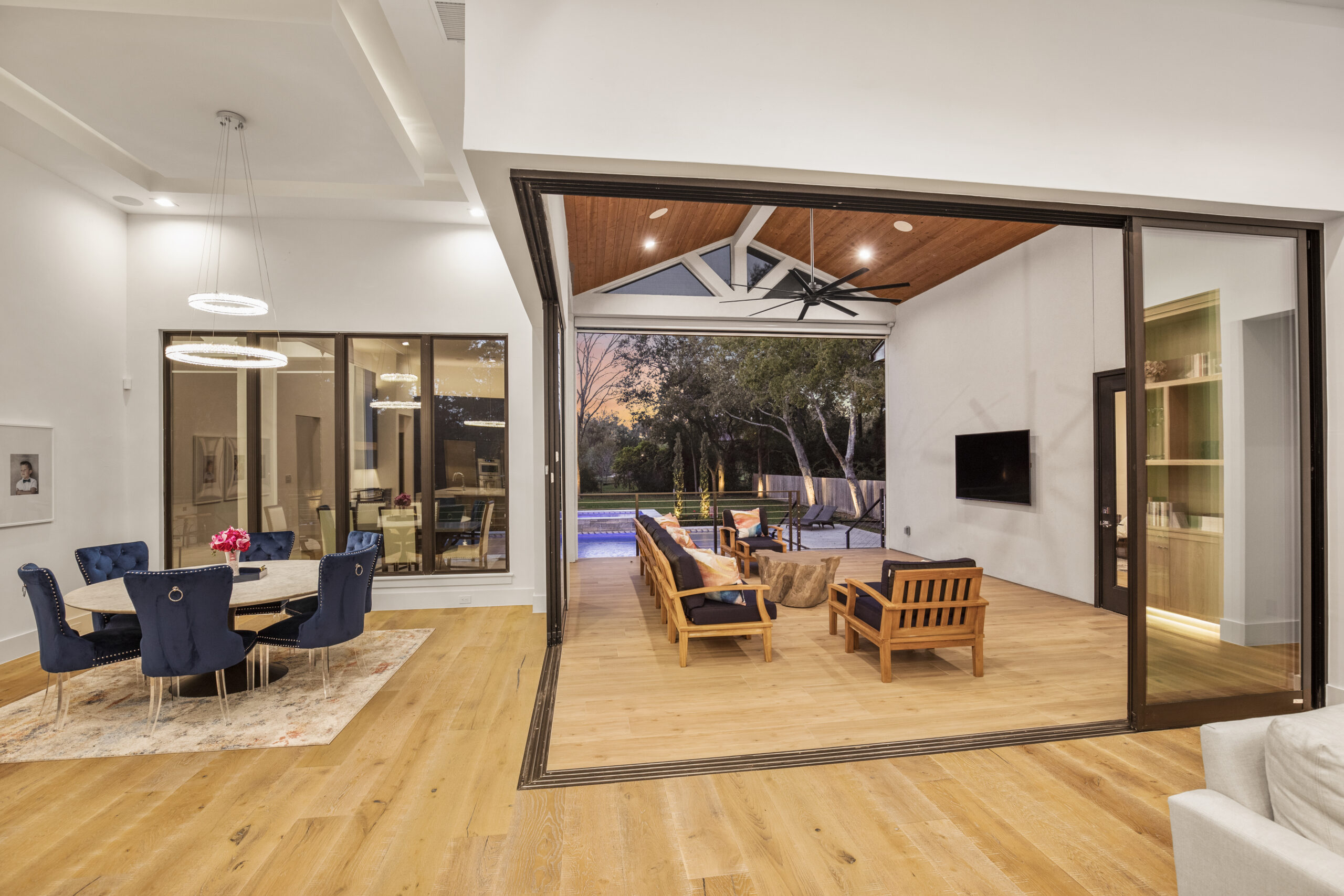 This modern home blends clean architectural lines with subtle Hill Country influences. Interior finishes extend seamlessly outdoors, creating a strong indoor-outdoor connection anchored by a corner-meet sliding door. Detailed ceiling treatments add depth and visual interest throughout the home. The primary suite offers a true retreat with expansive his-and-hers closets and a spa-like wet room. Additional features—including dual offices, a large game room, and custom-finished bedrooms—support both function and elevated living.