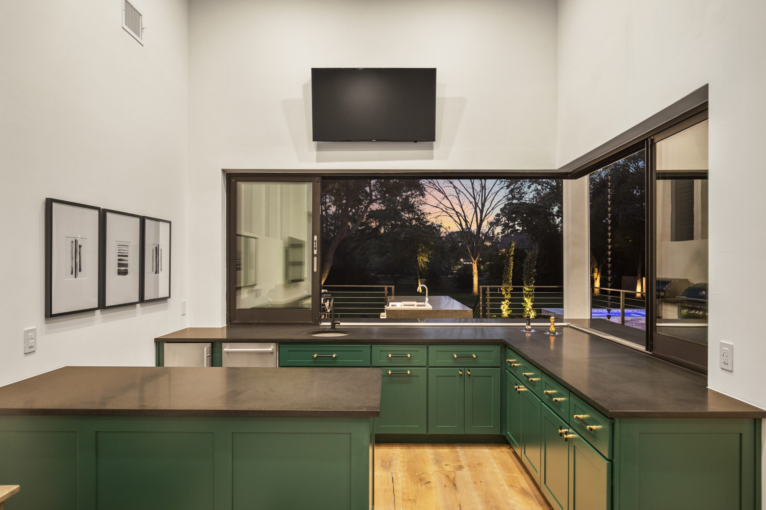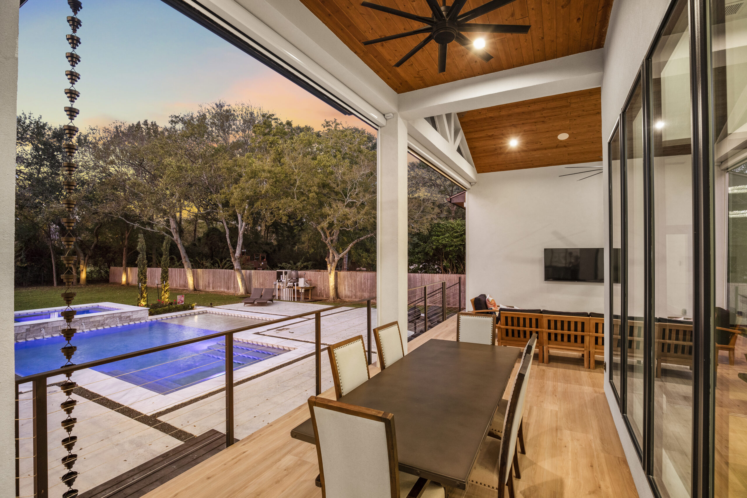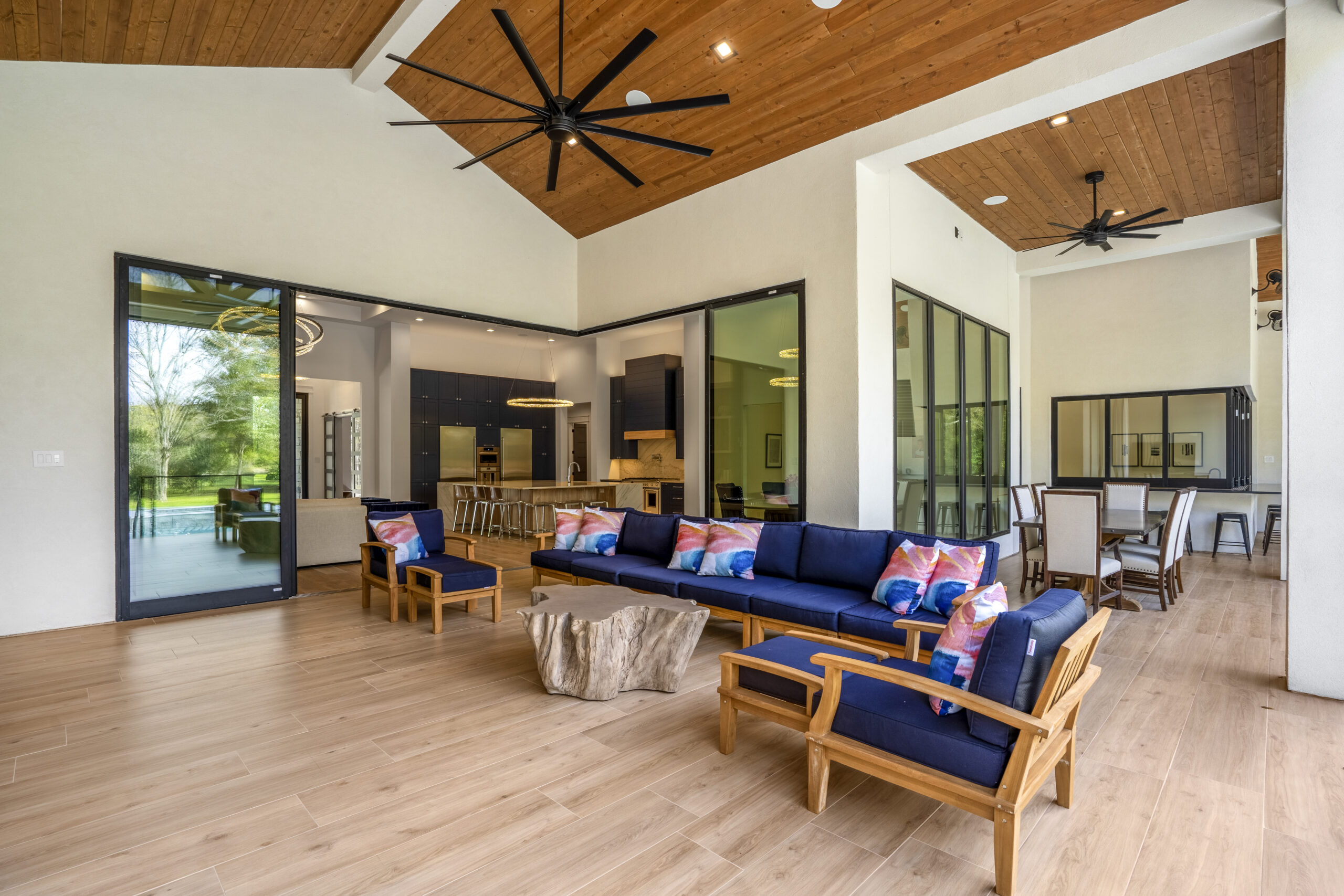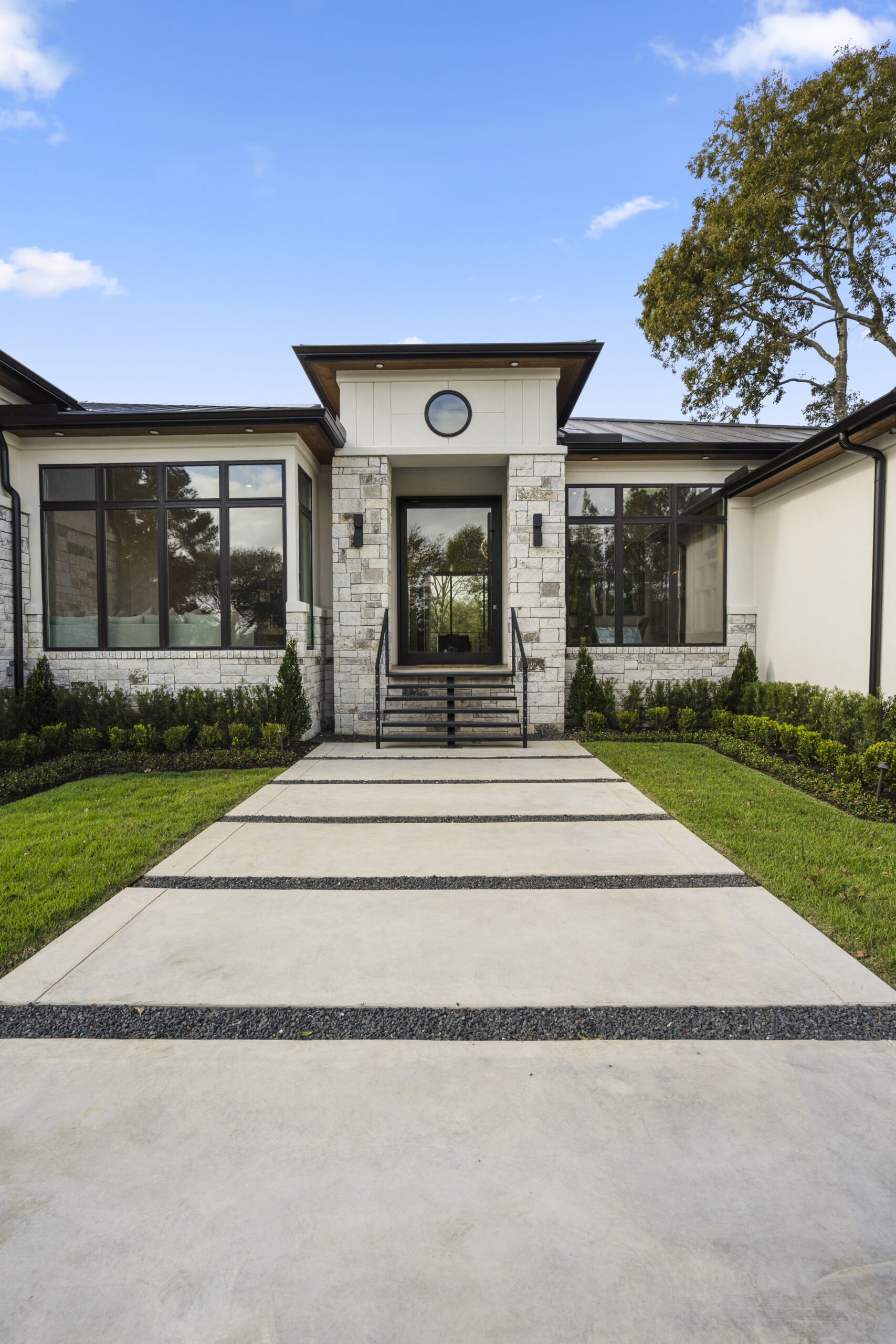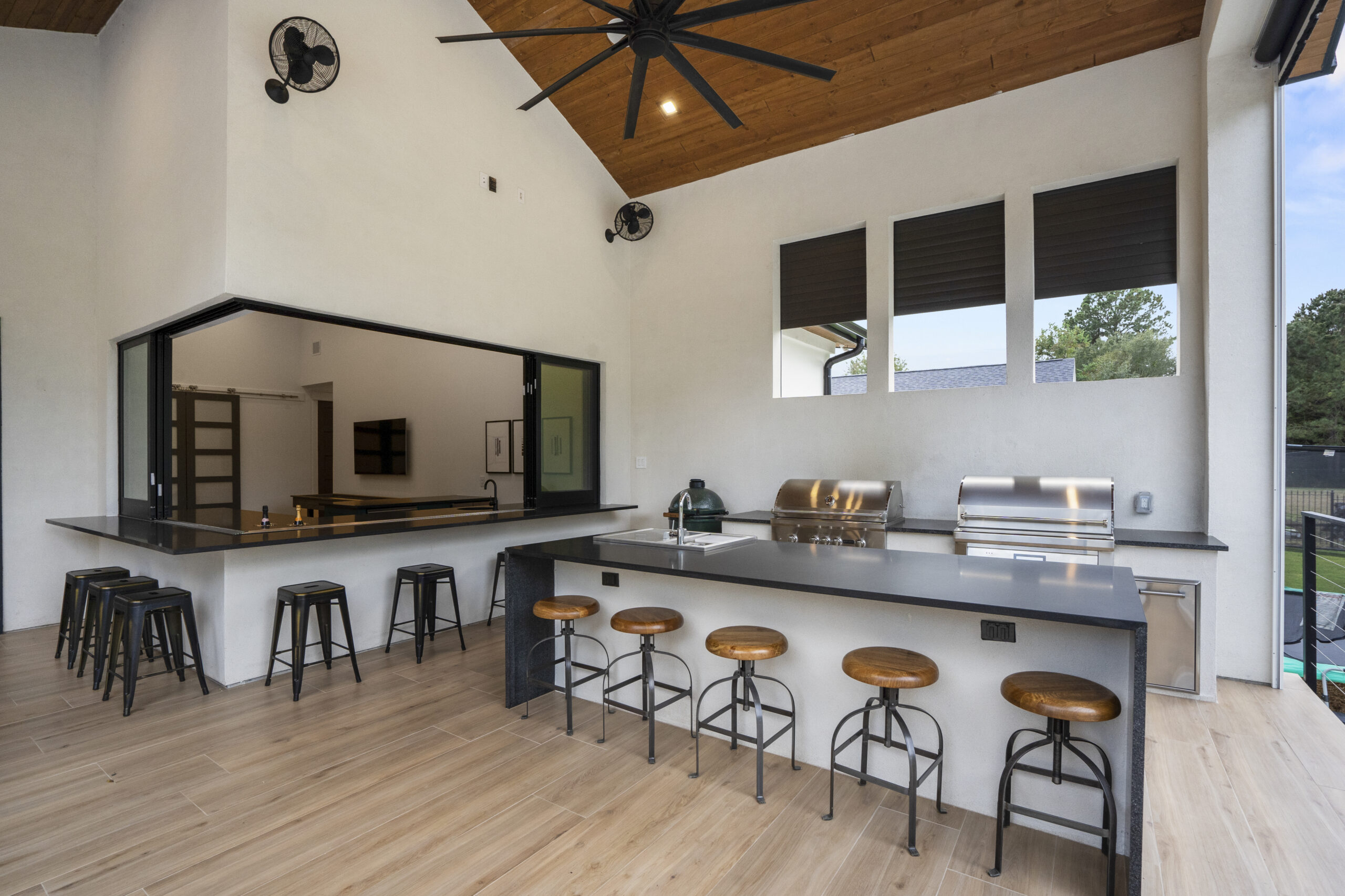 This modern home blends clean architectural lines with subtle Hill Country influences. Interior finishes extend seamlessly outdoors, creating a strong indoor-outdoor connection anchored by a corner-meet sliding door. Detailed ceiling treatments add depth and visual interest throughout the home. The primary suite offers a true retreat with expansive his-and-hers closets and a spa-like wet room. Additional features—including dual offices, a large game room, and custom-finished bedrooms—support both function and elevated living.