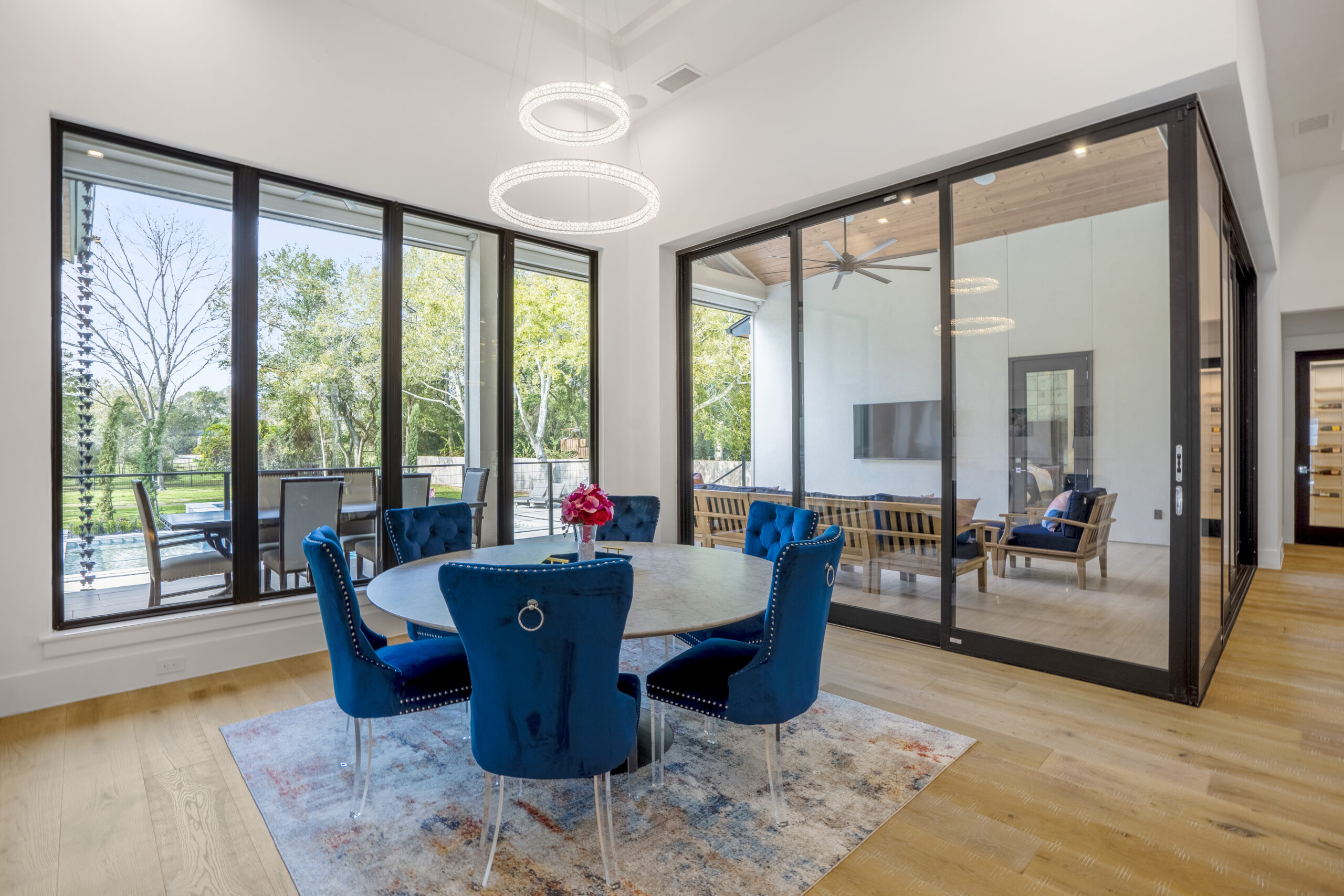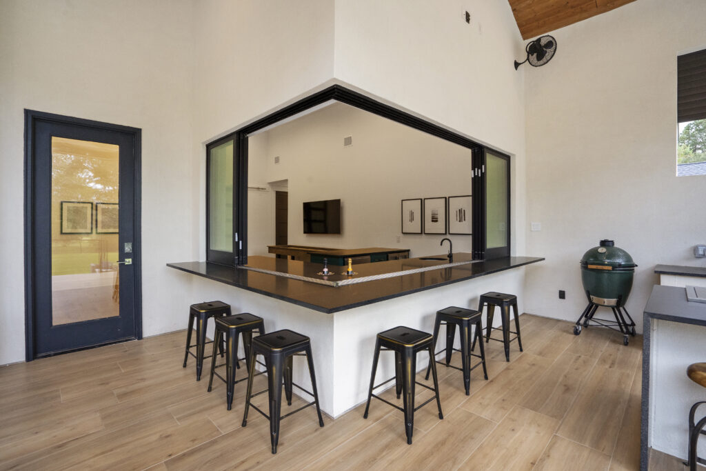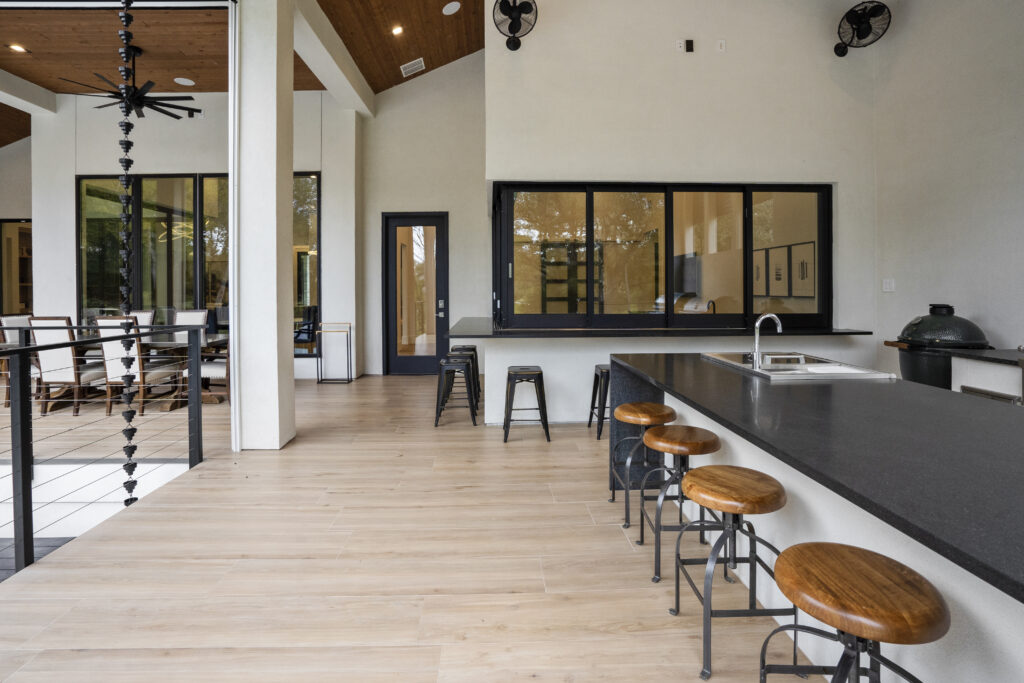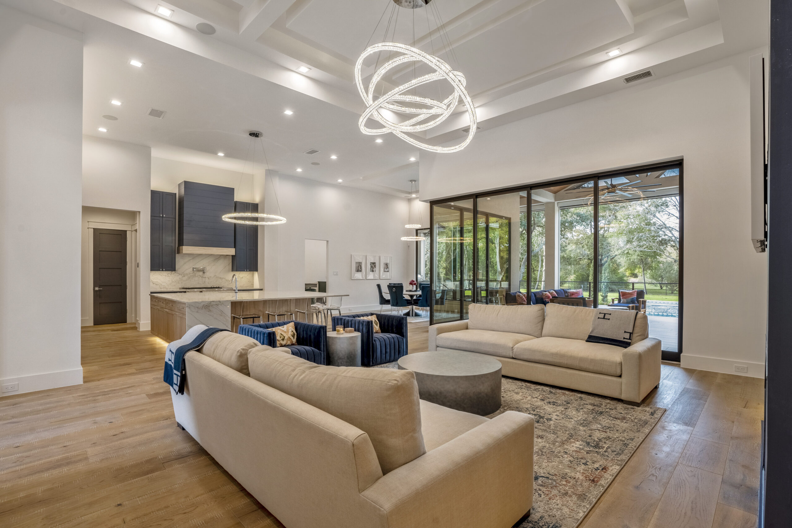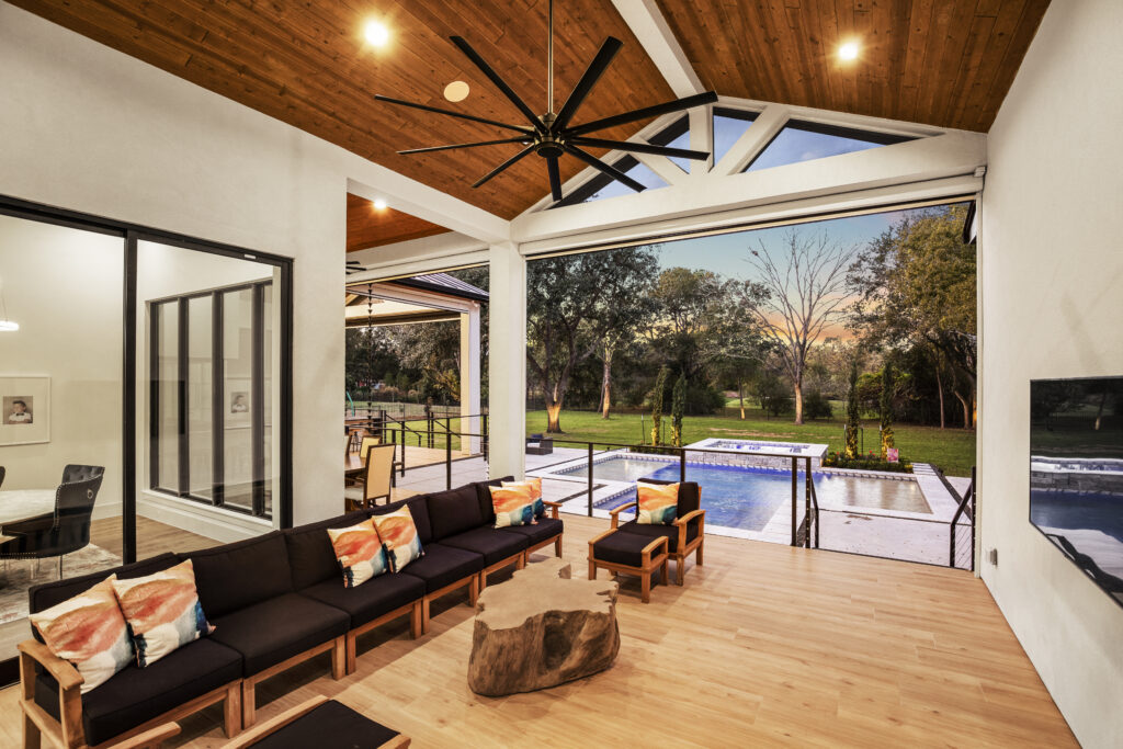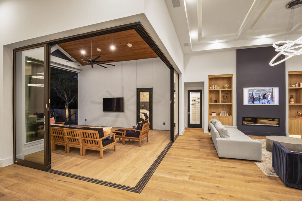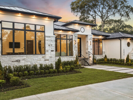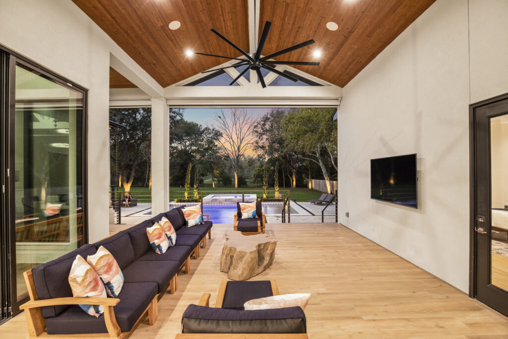 This modern home blends clean architectural lines with subtle Hill Country influences. Interior finishes extend seamlessly outdoors, creating a strong indoor-outdoor connection anchored by a corner-meet sliding door. Detailed ceiling treatments add depth and visual interest throughout the home. The primary suite offers a true retreat with expansive his-and-hers closets and a spa-like wet room. Additional features—including dual offices, a large game room, and custom-finished bedrooms—support both function and elevated living.