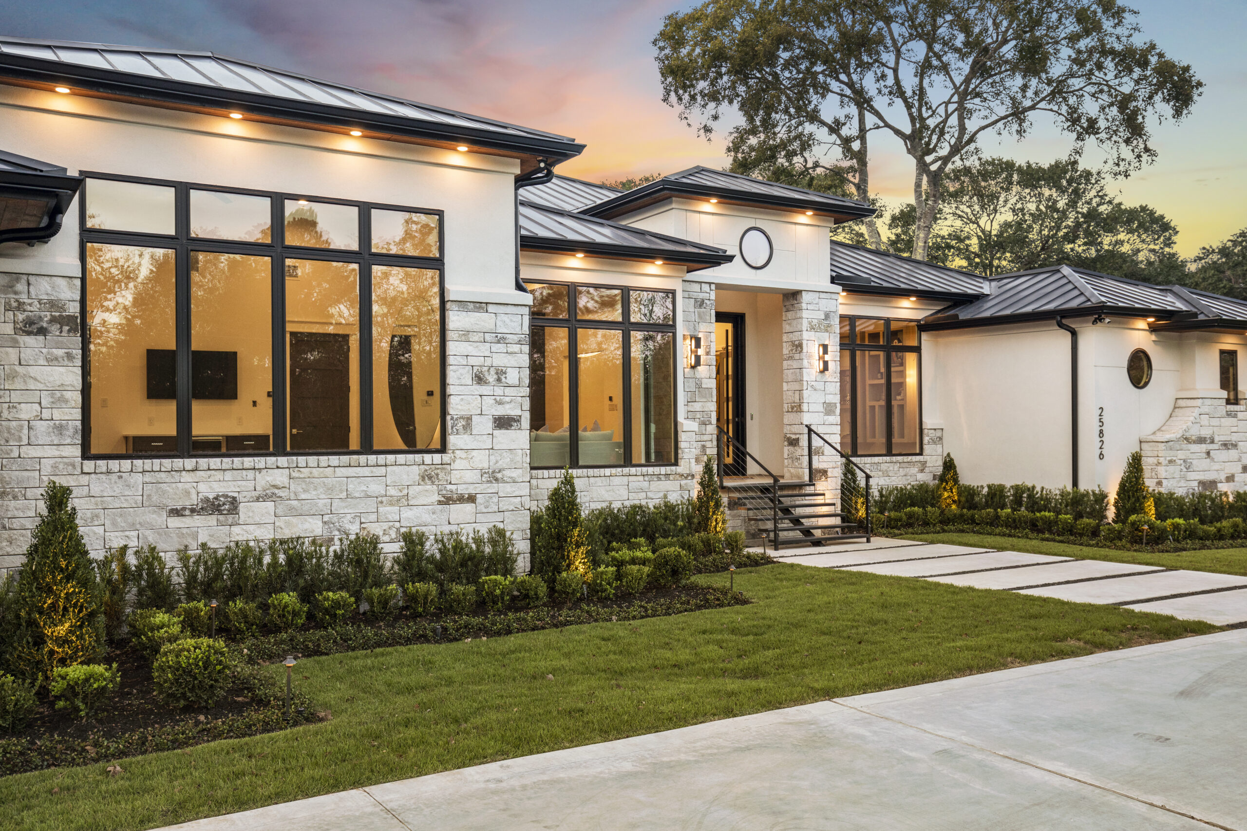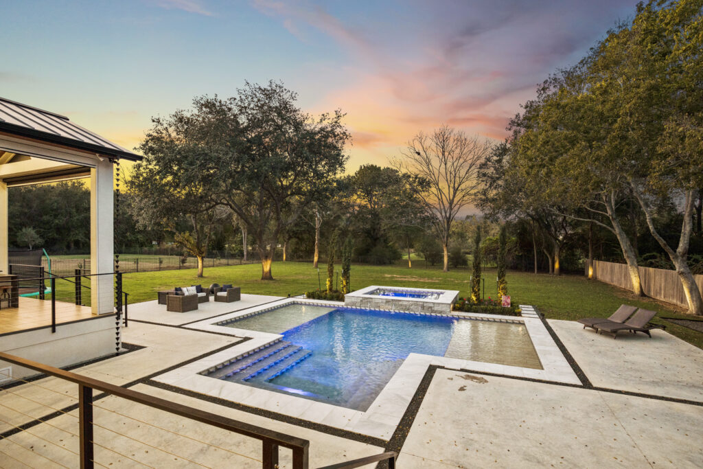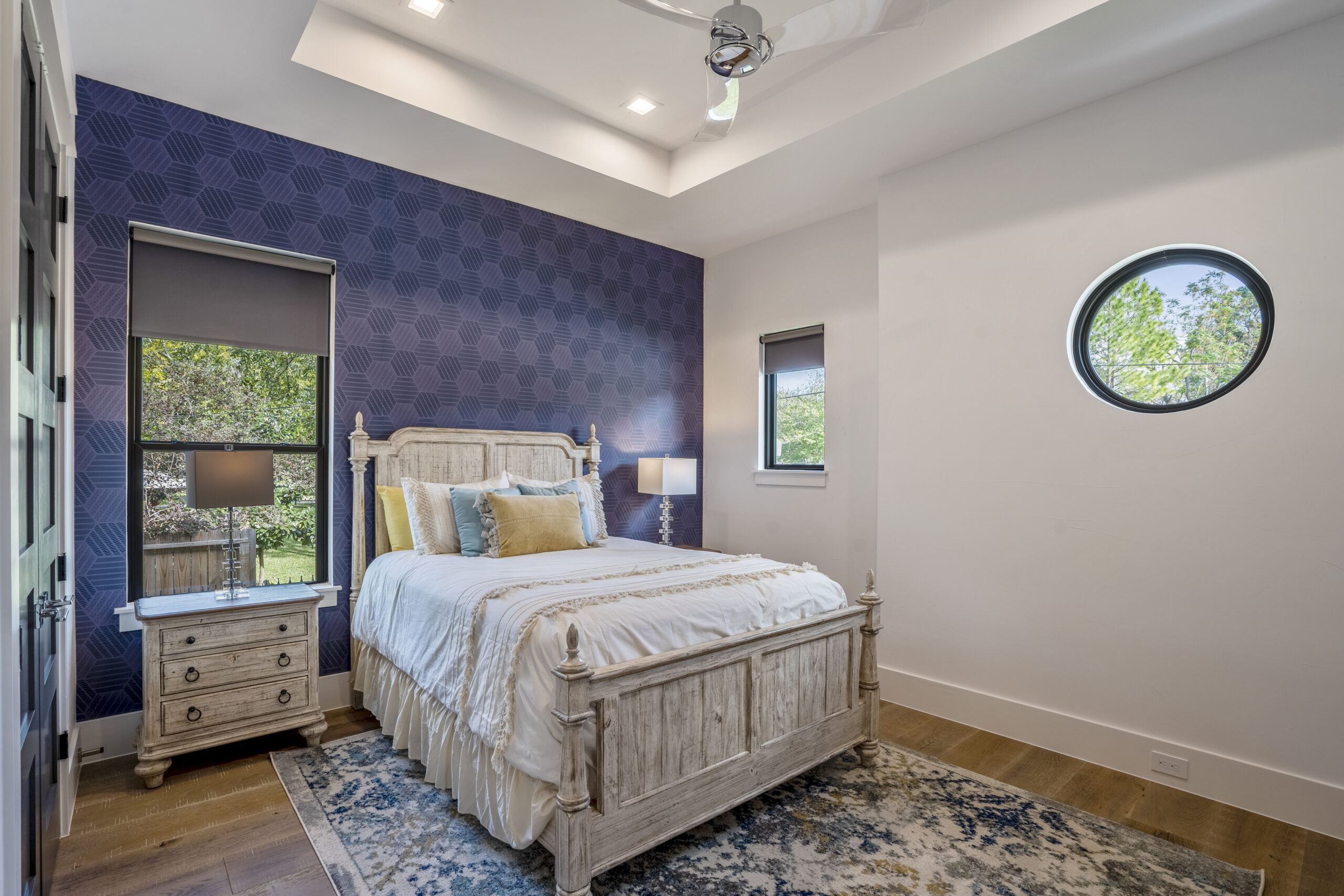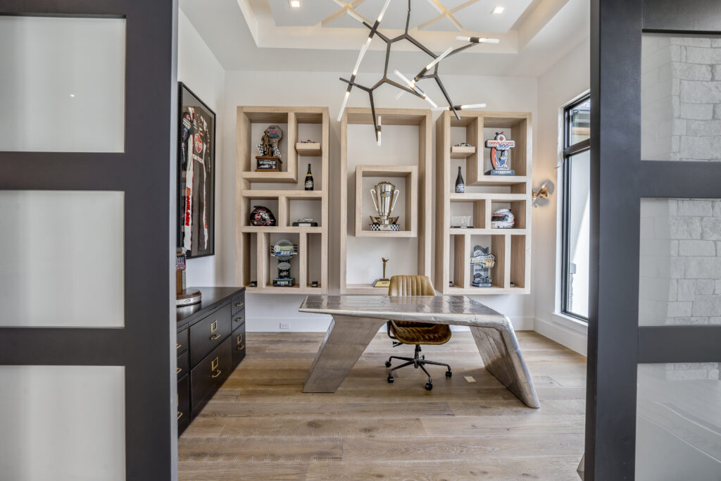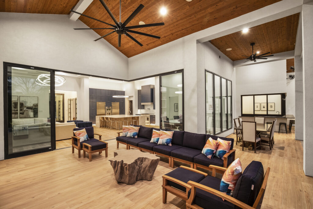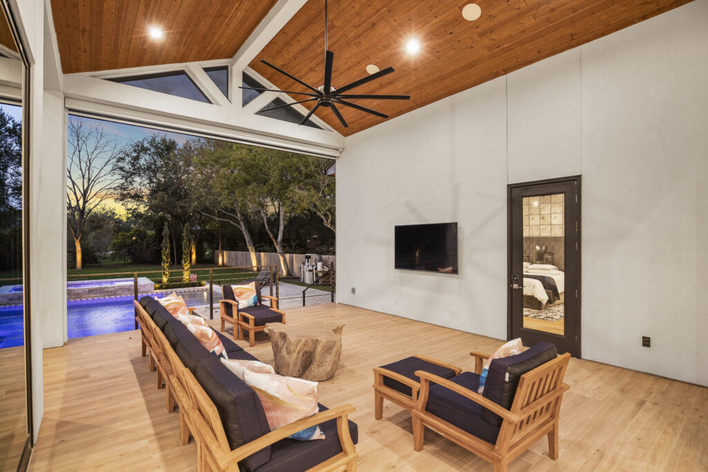 This modern home blends clean architectural lines with subtle Hill Country influences. Interior finishes extend seamlessly outdoors, creating a strong indoor-outdoor connection anchored by a corner-meet sliding door. Detailed ceiling treatments add depth and visual interest throughout the home. The primary suite offers a true retreat with expansive his-and-hers closets and a spa-like wet room. Additional features—including dual offices, a large game room, and custom-finished bedrooms—support both function and elevated living.