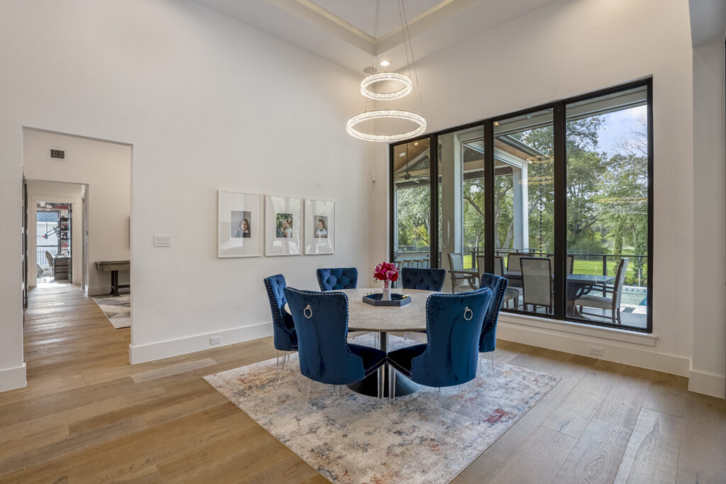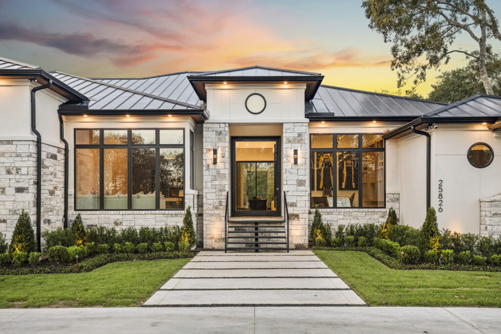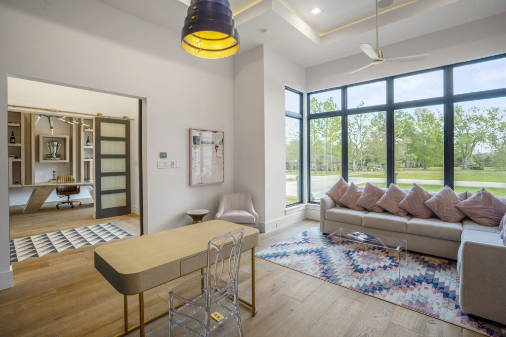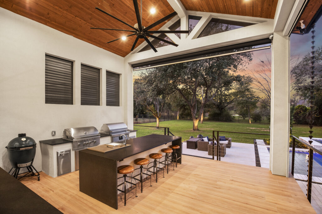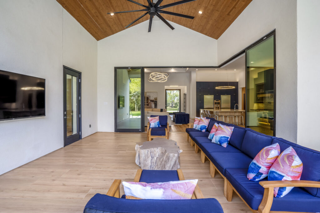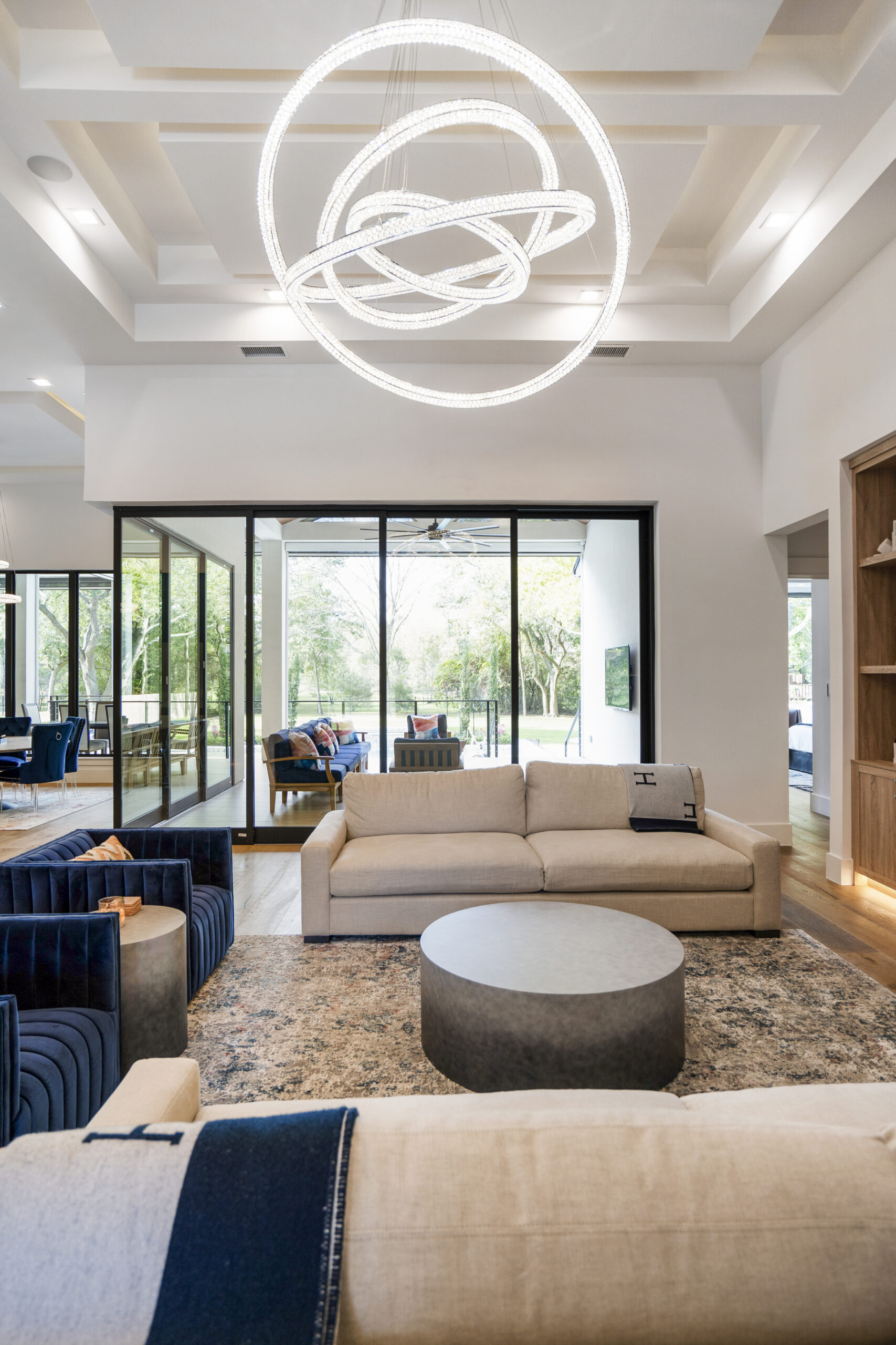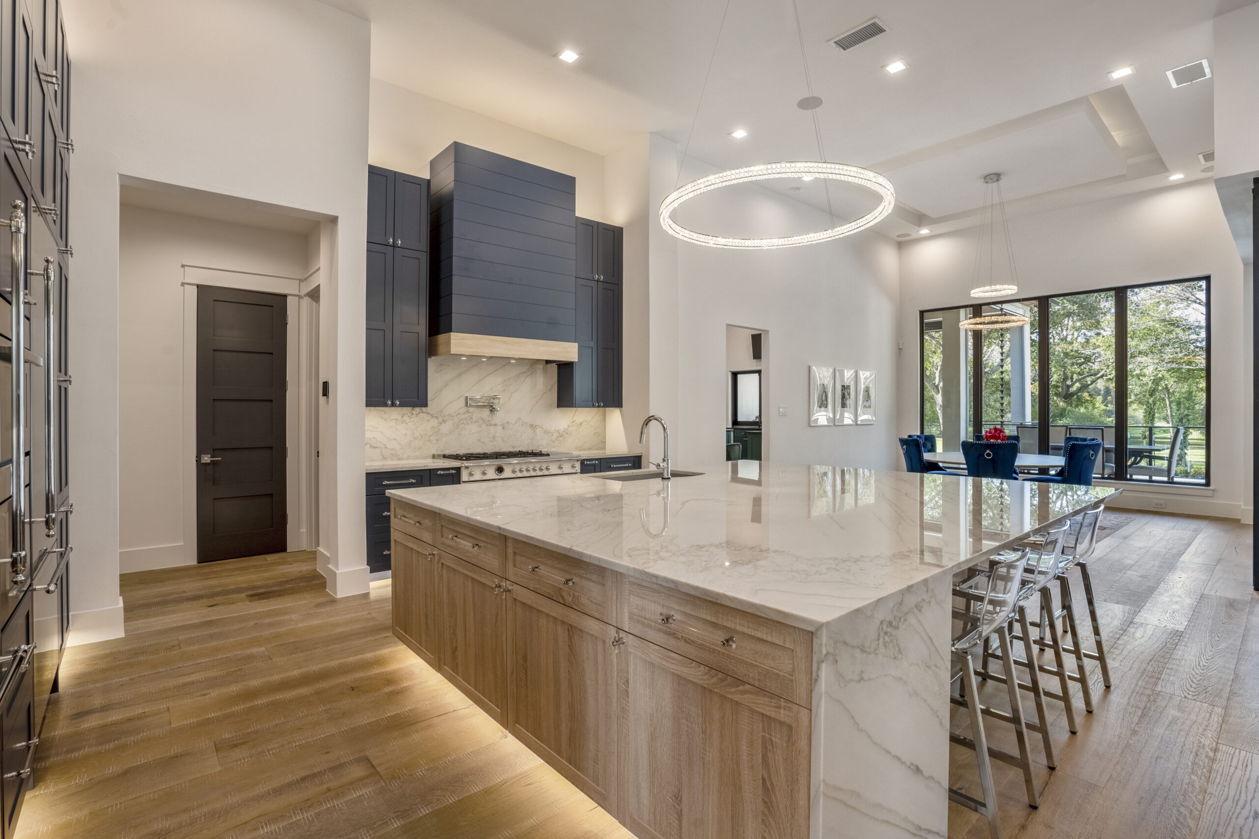 This modern home blends clean architectural lines with subtle Hill Country influences. Interior finishes extend seamlessly outdoors, creating a strong indoor-outdoor connection anchored by a corner-meet sliding door. Detailed ceiling treatments add depth and visual interest throughout the home. The primary suite offers a true retreat with expansive his-and-hers closets and a spa-like wet room. Additional features—including dual offices, a large game room, and custom-finished bedrooms—support both function and elevated living.