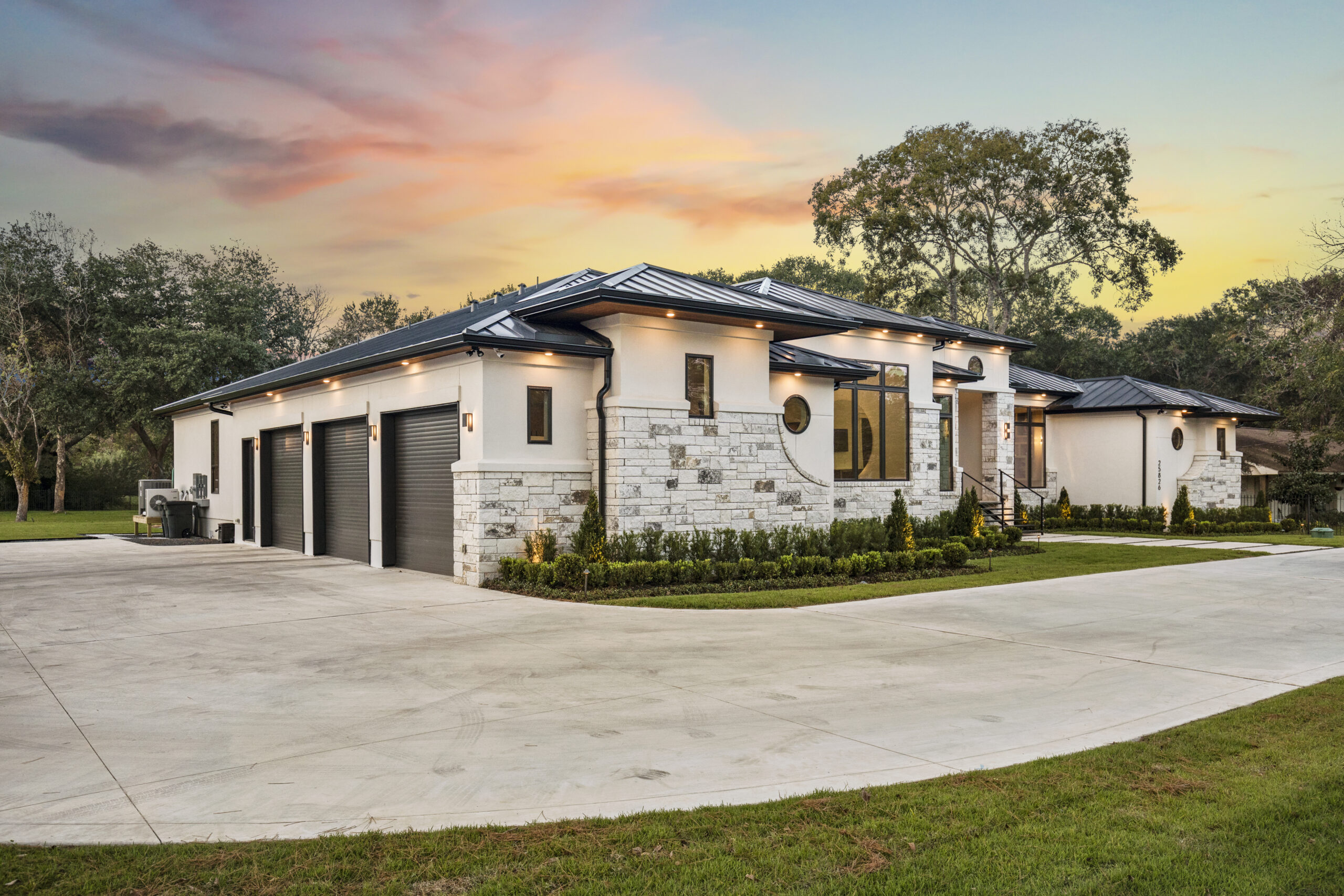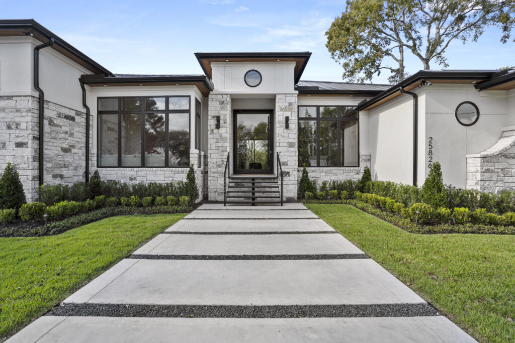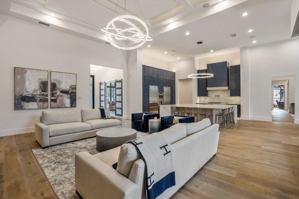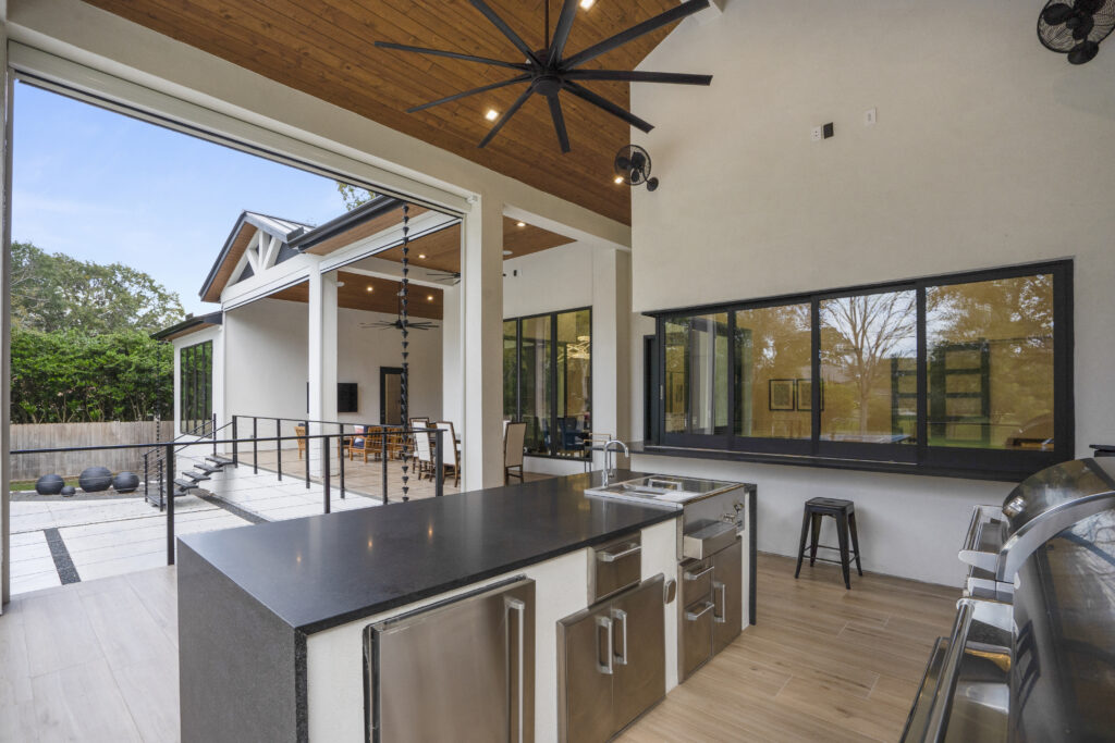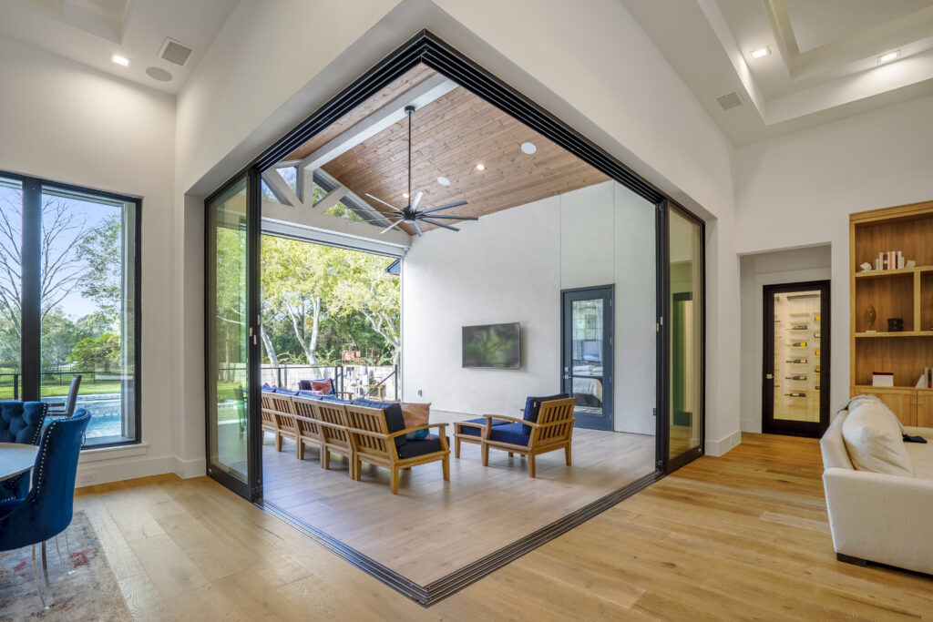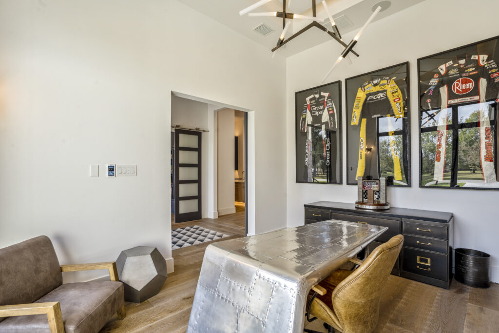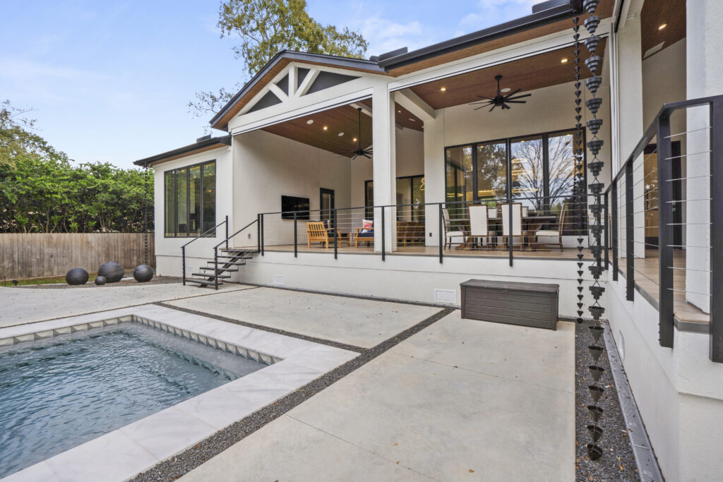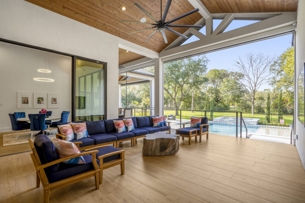 This modern home blends clean architectural lines with subtle Hill Country influences. Interior finishes extend seamlessly outdoors, creating a strong indoor-outdoor connection anchored by a corner-meet sliding door. Detailed ceiling treatments add depth and visual interest throughout the home. The primary suite offers a true retreat with expansive his-and-hers closets and a spa-like wet room. Additional features—including dual offices, a large game room, and custom-finished bedrooms—support both function and elevated living.