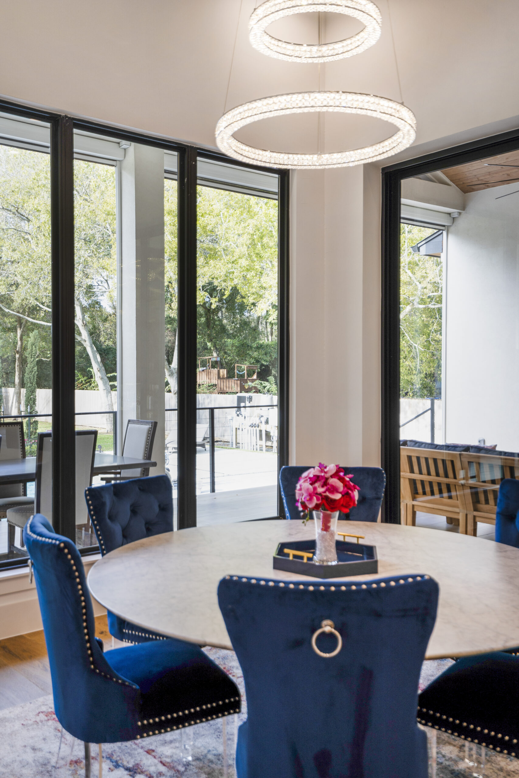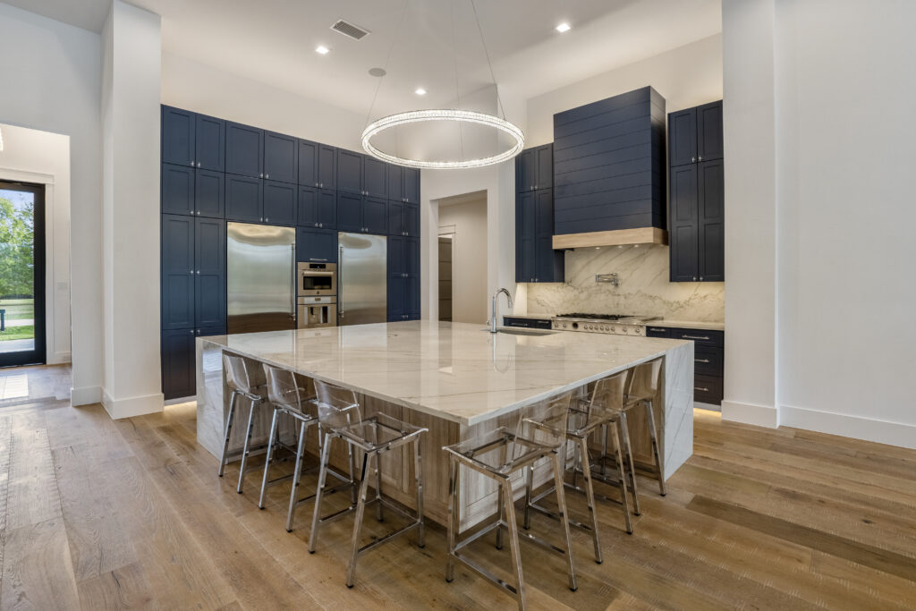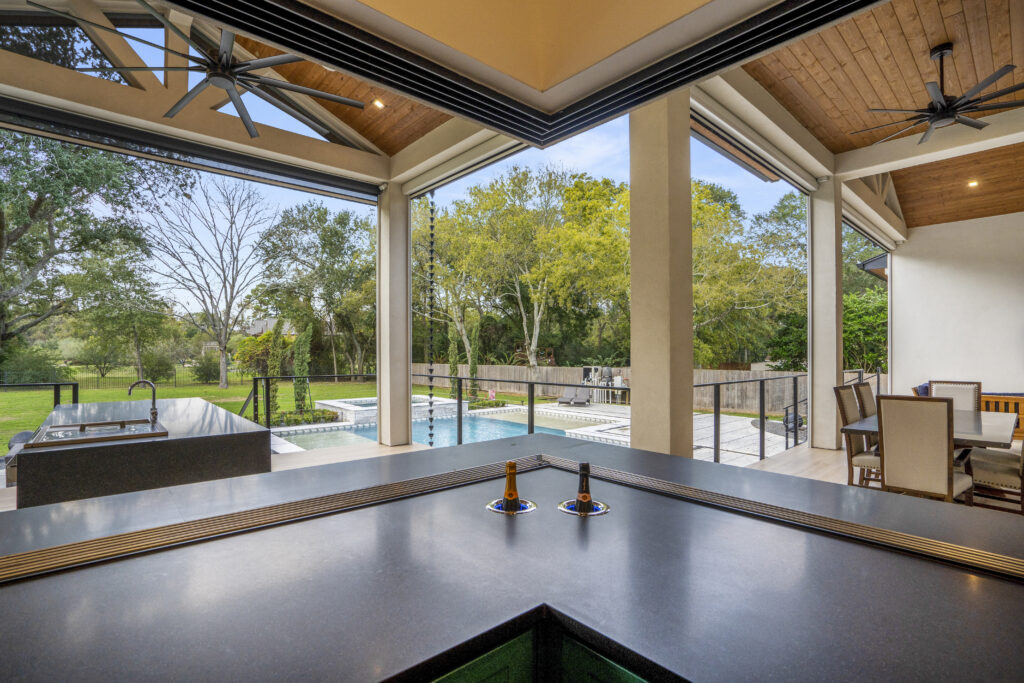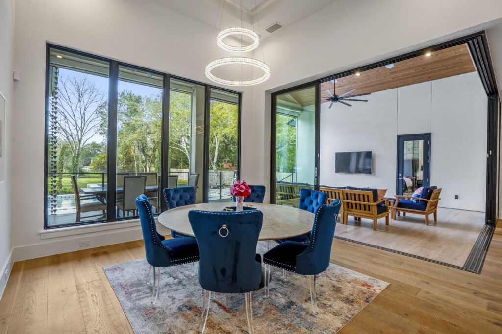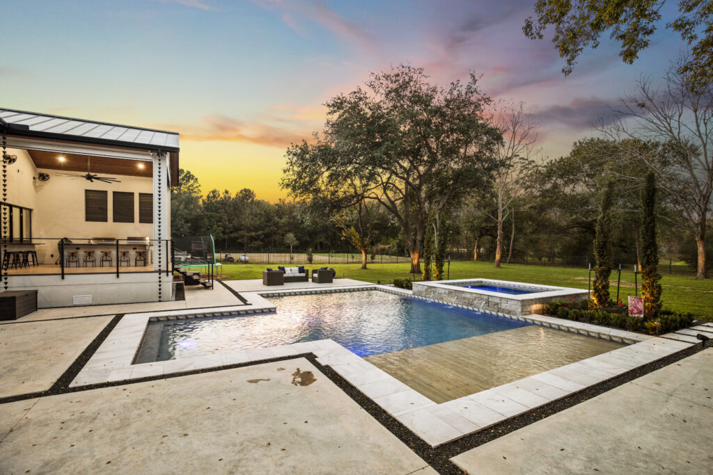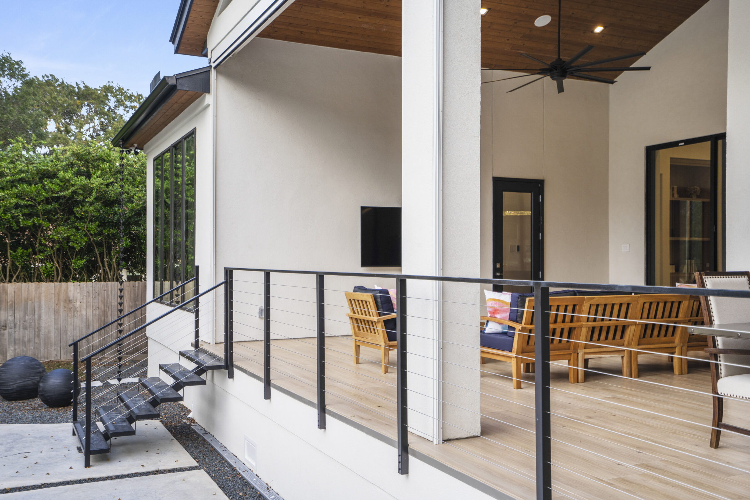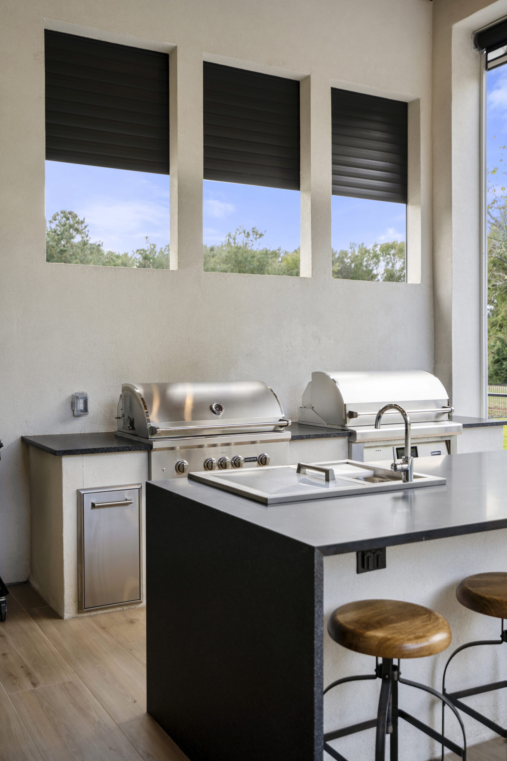 This modern home blends clean architectural lines with subtle Hill Country influences. Interior finishes extend seamlessly outdoors, creating a strong indoor-outdoor connection anchored by a corner-meet sliding door. Detailed ceiling treatments add depth and visual interest throughout the home. The primary suite offers a true retreat with expansive his-and-hers closets and a spa-like wet room. Additional features—including dual offices, a large game room, and custom-finished bedrooms—support both function and elevated living.