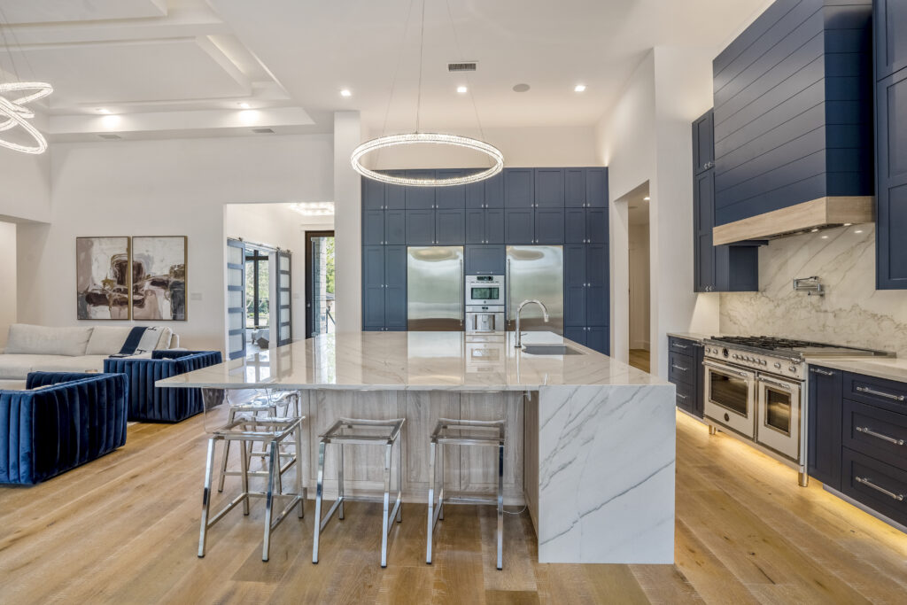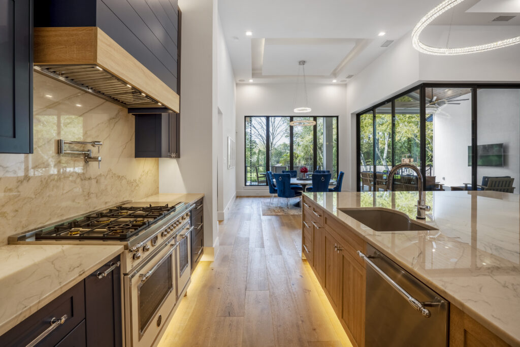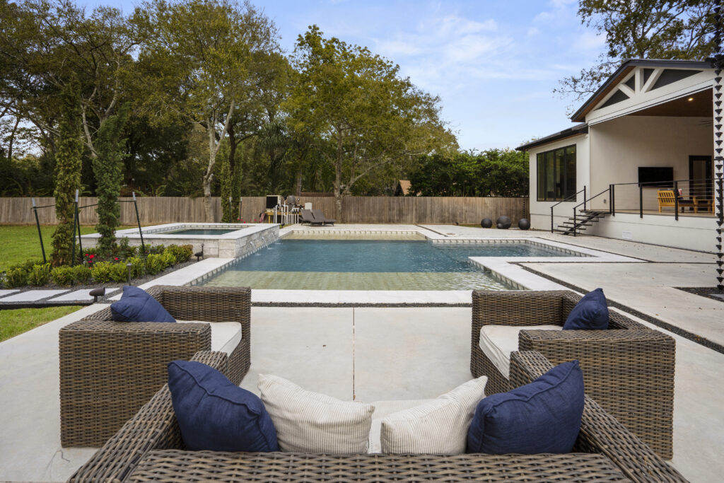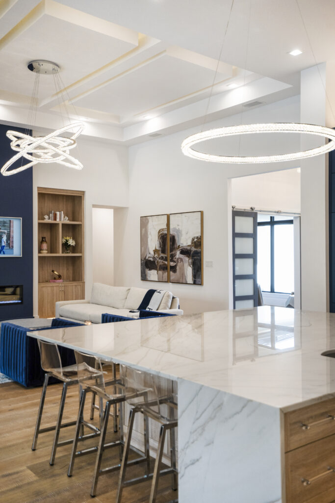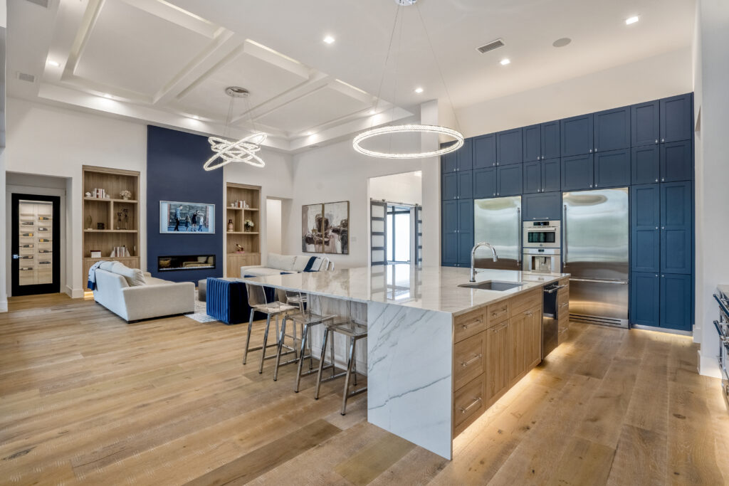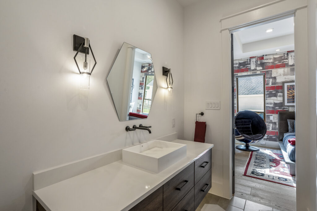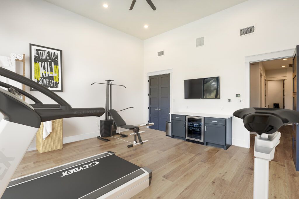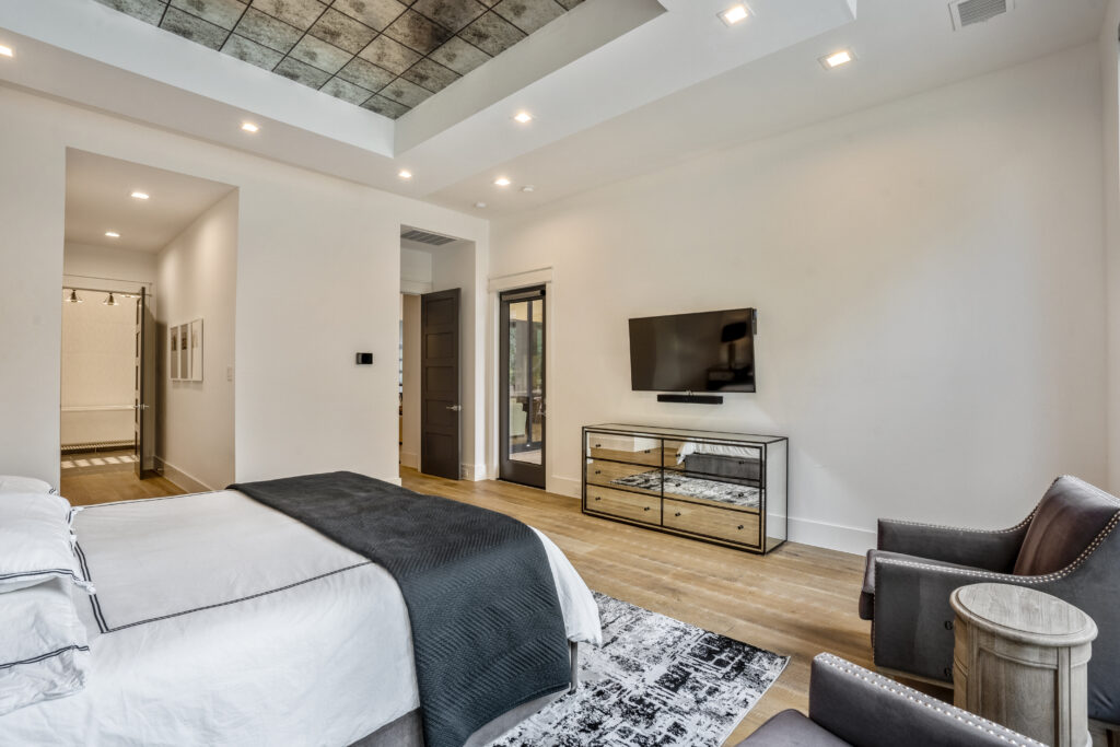 This modern home blends clean architectural lines with subtle Hill Country influences. Interior finishes extend seamlessly outdoors, creating a strong indoor-outdoor connection anchored by a corner-meet sliding door. Detailed ceiling treatments add depth and visual interest throughout the home. The primary suite offers a true retreat with expansive his-and-hers closets and a spa-like wet room. Additional features—including dual offices, a large game room, and custom-finished bedrooms—support both function and elevated living.